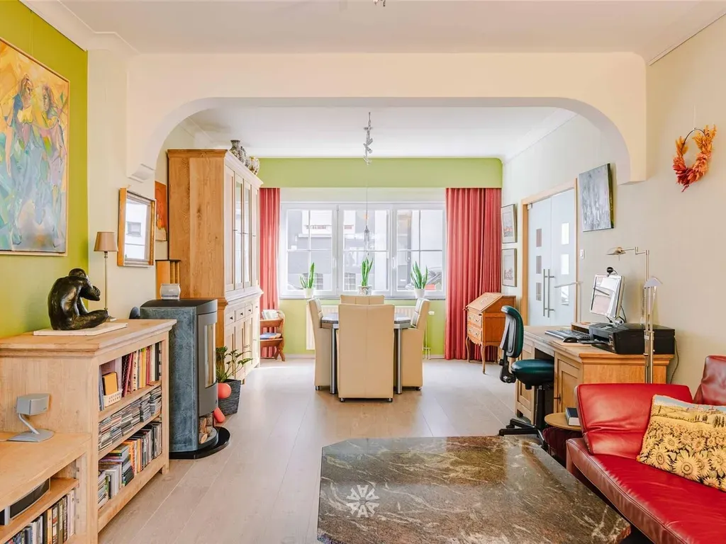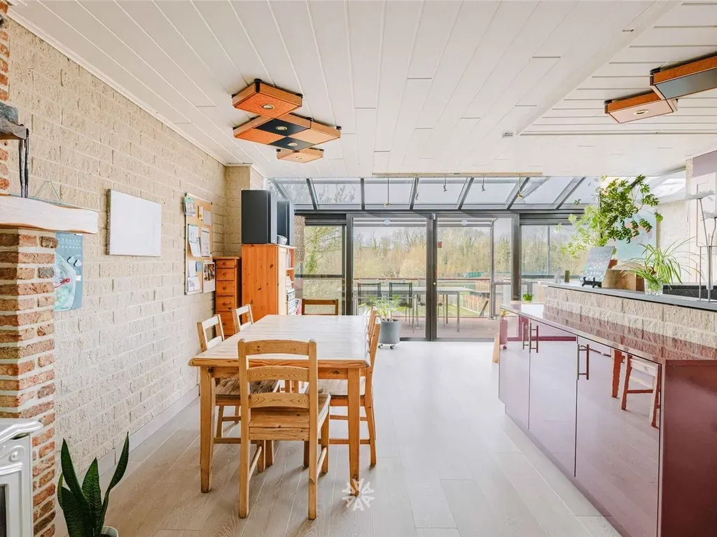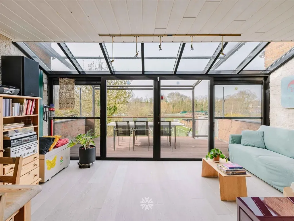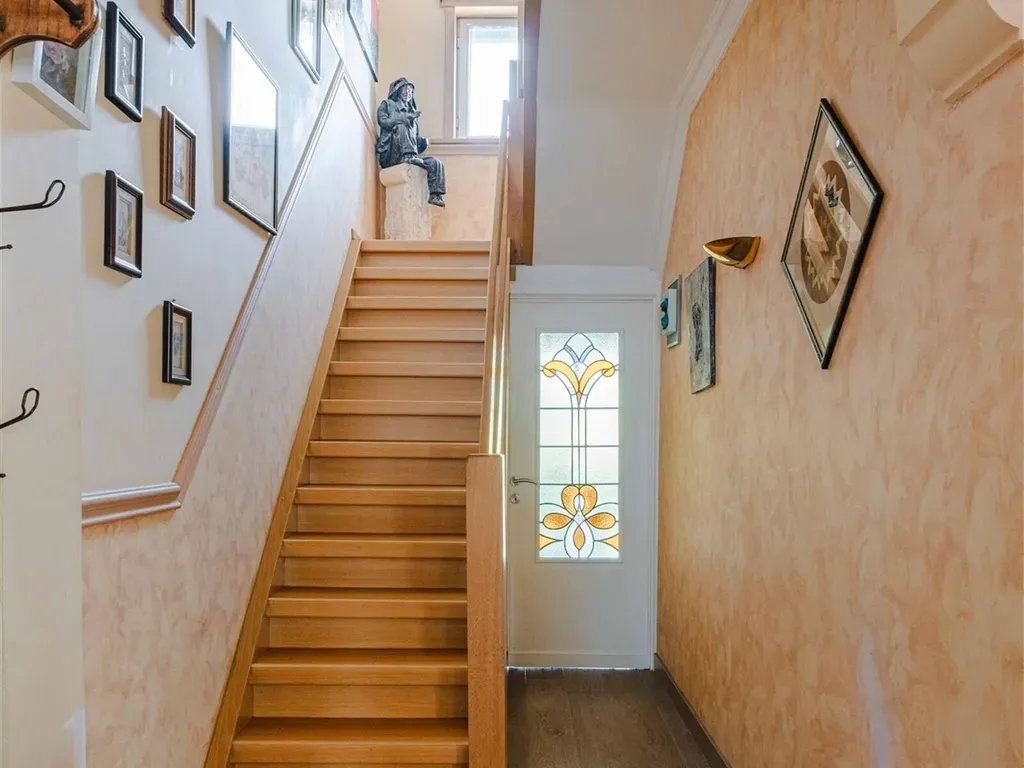 Gelijkvloers: Royale inkomhal met glas-in-loodraam, knusse leefruimte met gashaard, zithoek en eetkamer, open leefkeuken voorzien van inbouwtoestellen, tweede eetkamer en zithoek met zicht op de tuin, verwarmd zuid-west georiënteerd terras met zonneluifel, apart gastentoilet en toegang tot de zeer ruime kelder.