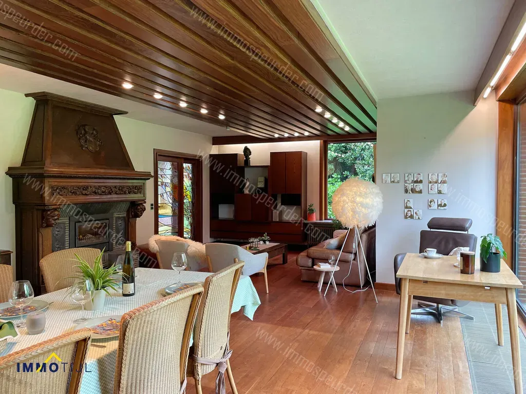 Eigenstraat 90 - 9450 Haaltert - Architecturale villa met prachtige tuin op 32are! Deze architecturale villa van de jaren 70 omvat op het gelijkvloers een riante inkomhal met afzelia houten trap, een vestiaire ruimte, apart toilet en een grote living van +/- 50m² met aansluitend de ingerichte keuken. Naast de keuken bevindt zich een ruime berging met wasplaats en douche, deze biedt ook toegang tot de tuin. Verder beschikt het gelijkvloers nog over een aparte bureau/speel ruimte. De bovenverdieping omvat een imposante overloop met 5 slaapkamers, en is volledig uitgewerkt in parket (afzelia), de masterbedroom heeft een balkon met zicht op de tuin en is verbonden met de ruime badkamer. De overige 3 slaapkamers hebben elk een ingebouwde kleerkast en een lavabomeubel. Verder beschikt de verdieping nog over een apart toilet en een afzonderlijke bergruimte. De woning is deels onderkelderd en beschikt over een dubbele garage met elektrische poort (voor 2 wagens), voldoende bergplaats/wijnkelder en cv-ruimte. Verder beschikt de woning over een mooie voortuin met oprit (voor 4 wagens), een volledig aangelegde prachtige tuin met ruim zonneterras waar men volledig tot rust kan komen. De tuin is volledig afgesloten en beschikt achteraan over een grote boomgaard met fruitbomen/grote weide voor dieren te houden (+/- 2000m2). Benieuwd naar deze mooie eigendom? Dan kan u meteen binnenkijken aan de hand van het virtuele bezoek op onze website. Voor meer info en/of een bezoek, contacteer ons via aalst@immotijl.be of 053/42 46 99.
