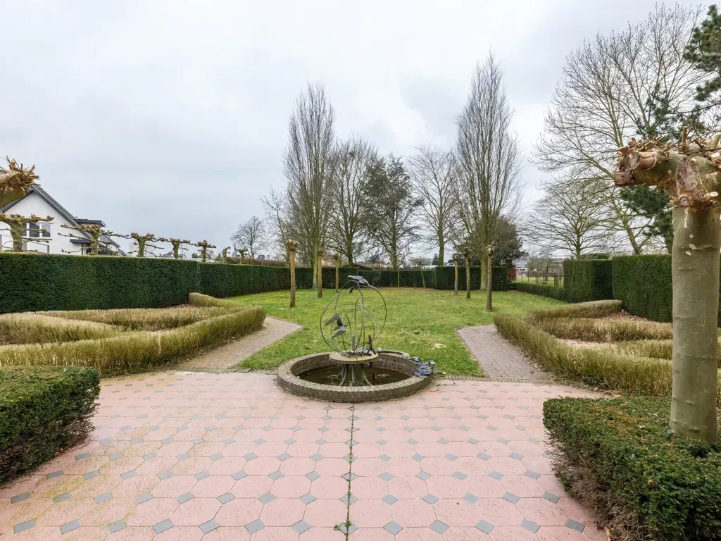 Prachtige, onder architectuur aangelegde parktuin voorzien van diverse terrassen en een beregeningsinstallatie. Verder nog een mooi, volledig omheind weiland.