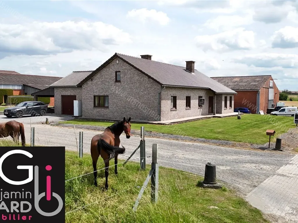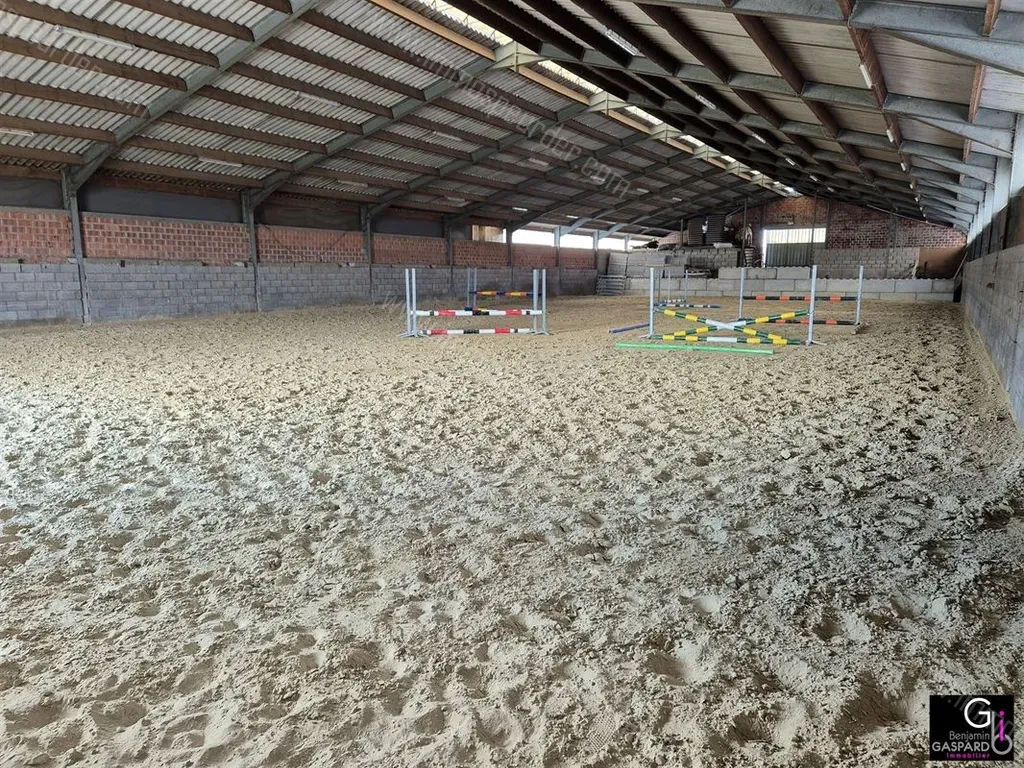 Wijngaardstraat 35 - 3870 Heers - DESCRIPTIF Partie maison Cave (hauteur de 2 mètres) Cave 1 (près de l'escalier) 3,75 X 5,25 = 19,75 M²Cave 2 (au fond) 4,45 X 8,8 = 39,4 M²Cave 3 4 X 5,4 = 21,6 M²Cave 4 (chaufferie) 2 X 4 = 8 M²Cave 5 (citerne à mazout) 2 X 4 = 8 M²Couloir central 1,1 X 11 = 12,4 M²Cave 6 2,3 X 3,2 = 7,3 M²Cave 7 3,6 X 3,6 = 12,8 M²Cave 8 3,5 X 3,6 = 12,6 M²Cave 9 3,6 X 3,75 = 13,5 M² Total de : 155,4 M² Rez-de-chaussée (hauteur de 2,45 mètres) Hall d'entrée 2,3 X 2,65 = 6,1 M²Wc indépendant 0,87 X 1,45 = 1,25 M²Cuisine équipée 4 X 5,3 = 21,15 M²Living/salle à manger 4,45 X 8,85 = 39,5 M²Couloir vers le garage 2 X 4 = 8 M²Garage 5 X 6 = 30 M² hauteur de porte: 2,15 m largeur de: 2,24 mHall de nuit 1,07 X 9,75 = 10,4 M²Salle d'eau 1,97 X 3,95 = 7,8 M²Chambre 1 3,55 X 3,6 = 12,65 M²Chambre 2 3,5 X 3,57 = 12,4 M²Chambre 3 3,73 X 3,57 = 13,3 M²Chambre 4 (suite parentale) 3,72 X 5,2 = 19,45 M²Car port 3,3 X 6,4 = 21,2 M² Total de : 182 M² sans le car port Premier niveau (espace aménageable mansardé) Pièce 1 (dessus du garage) 5 X 6 = 30 M² hauteur sous pointe de : 2,05 mCouloir 2 X 4,2 = 8,4 M²Pièce 2 3,8 X 6,6 = 25 M² hauteur sous pointe de: 2,3 m Pièce 3 3,5 X 4,8 = 17 M²Pièce 4 3,5 X 4,9 = 17,5 M² + 4 X 7,5 = 30,7 M² + 2,3 X 5 = 11,7 M²Pièce 5 (dessus du salon) 4,5 X 6,7 = 30,5 M² hauteur sous pointe de: 3 m Total de: 170,8 M² Atelier le long de la route avec partie bureau Rez-de-chaussée Cour extérieure bétonnée avec fosse de lavage 11 X 20 = 220 M²Première partie (côté route) 19,4 X 30 = 581 M² hauteur sous pointe: 7,4 m porte : hauteur de: 4,85 m sur 4,9 m de large - réfectoire ou magasin 3 X 4,55 = 13,8 M² - Partie hall d'entrée/toilette 2,3 X 3,1 = 7,1 M² - Petit bureau du magasin 2,35 X 2,95 = 6,95 M² Deuxième partie (demi niveau) 10 X 19,4 = 194 M² hauteur sous pointe: 6,2 m porte : hauteur de: 3,5 m sur 4,8 m de large - Cabine de peinture intégrée 3,5 X 4,8 = 17 M² hauteur de: 2,4 m Total de: 775 M² Deuxième niveau (partie bureau) Hall de jour 2 X 4,45 = 8,9 M³Salle d'attente ou bureau 3 X 3,35 = 10 M²Bureau 5,15 X 6,35 = 32,8 M² Mezzanine 5 X 10 = 50 M²Mezzanine du grand hall 4,25 X 4,7 = 20 M²Partie rangement 3,5 X 5 = 17,5 M² Entrepôt (partie écurie et piste) Stabulation 7,95 X 11,25 = 90 M² porte de: 2,95 m de hauteur sur 5,4 m de largeSellerie 2,15 X 3,1 = 6,65 M²Partie boxes à chevaux salle de pansage 7,5 X 18,3 = 137 M²Piste couverte 18,5 X 40 = 736 M² hauteur sous pointe de: 6,1 mPartie aménageable sur deux niveaux arrière piste 10 X 18,4 = 184 M² porte de: 4,1 m de hauteur sur 3,7 de large Total de: 1.153,6 M² Description: Partie habitation Toiture en tuiles en bon étatChâssis double vitrage pvc en bon étatÉlectricité compteur bi-horaire tri phasé 380+ N non-conformeChauffage central au mazoutEau chaude par boiler électrique de 150 litresCuisine entièrement équipée avec four intégré, machine à café intégrée, taque induction, double évier, four à micro-onde intégré, lave vaisselle, 1 tiroir chauffantTout le niveau supérieur aménageableCar port + garageCaves sous toute la superficie Atelier côté route Toiture en éternit en bon état généralChâssis double vitrage pvc pour la partie bureauÉlectricité tri-phasé 380+N à remettre en conformitéTrès grand volume polyvalentPlusieurs portes coulissantes de grande hauteurSol bétonnéCour bétonnée avec salle de lavageBâtiment 4 façades Entrepôt actuellement aménagé en écurie Toiture en éternit en bon état généralGrande piste équestre sur sable de 736 M²5 boxes à chevaux de 3 par 3 (9M²)Sale de pansage + sellerieÉlectricité tri-phasé 380+NBâtiment 4 façadesPlusieurs portes coulissantes de grande hauteur