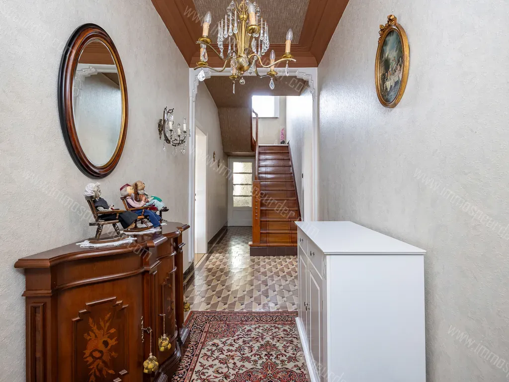 Inkomhal 14 m² op tegel. Achterinkom 5,5 m² op tegel. Leefruimte 30 m² op tegel. Eetkamer 14 m² op tegel. Keuken 8 m² op linoleum met keramische kookplaat, dampkap en dubbele spoelbak.