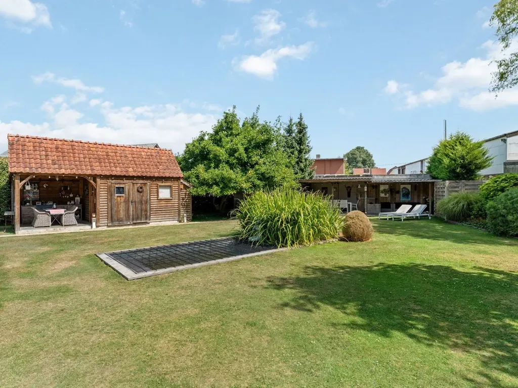 In de tuin is het aangenaam vertoeven door de zuidoost oriëntatie en het weidse uitzicht aan de voorkant van de woning. Voorts bevindt er zich een tuinhuis met overdekt terras en een bijgebouw van +/- 80m² dat dienst kan doen als werkruimte (bespreekbaar om dit al dan niet aan te kopen).