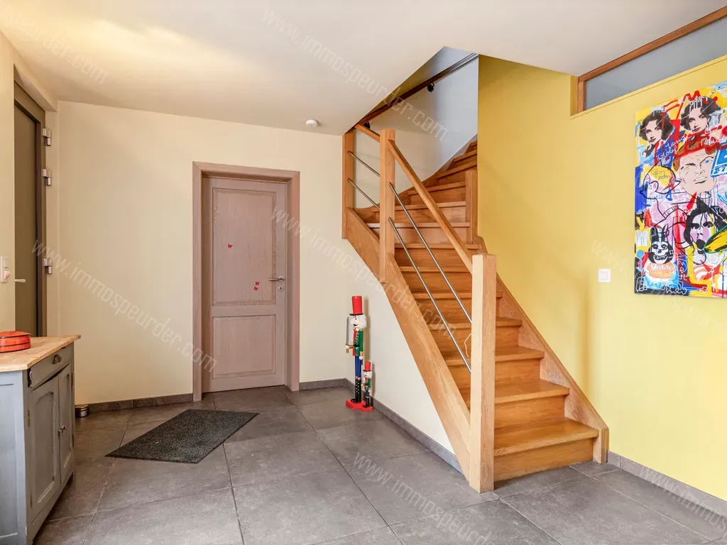 U komt deze woning binnen via de zeer ruime inkomhal. Het gelijkvloers bestaat verder uit een lichtrijke leefruimte met open keuken en toegang tot de tuin met een prachtig verzicht, bureau, veranda, berging/wasplaats, badkamer met ligbad, apart toilet en douchekamer. Deze woning beschikt ook nog over een zeer grote garage 73,4m².