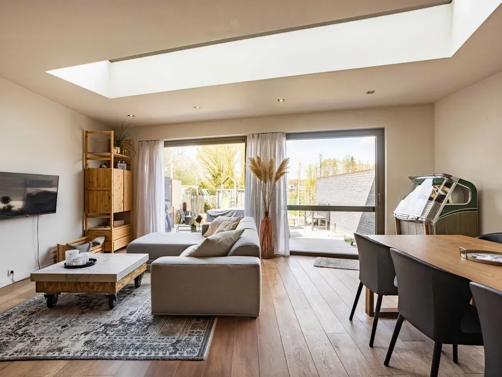 De woning bevindt zich in een rustige, kindvriendelijke buurt met tal van fiets- en wandelroutes in de nabije omgeving. Dankzij de centrale ligging – dicht bij het station en op slechts 10 minuten van de oprit van de E40 – is dit de ideale thuis voor wie rust en bereikbaarheid wil combineren.