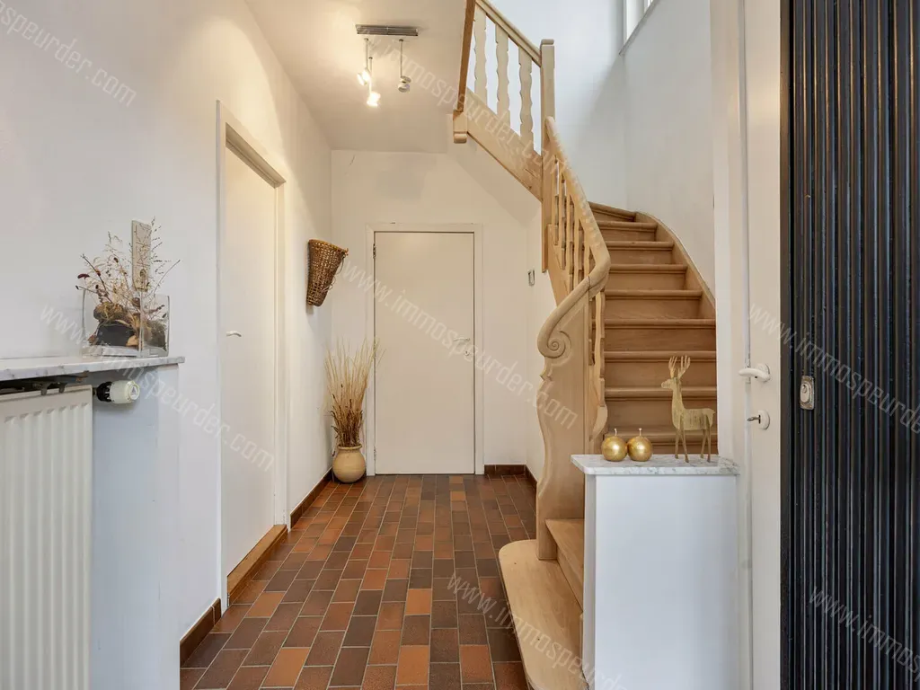 De woning beschikt over een inkomhal, gastentoilet en lichtrijke leefruimte. Sluitend aan de leefruimte bevindt zich de keuken met veranda. Via de gedeelde trap met de buren is er toegang tot het gezellige terras met mooie tuin.