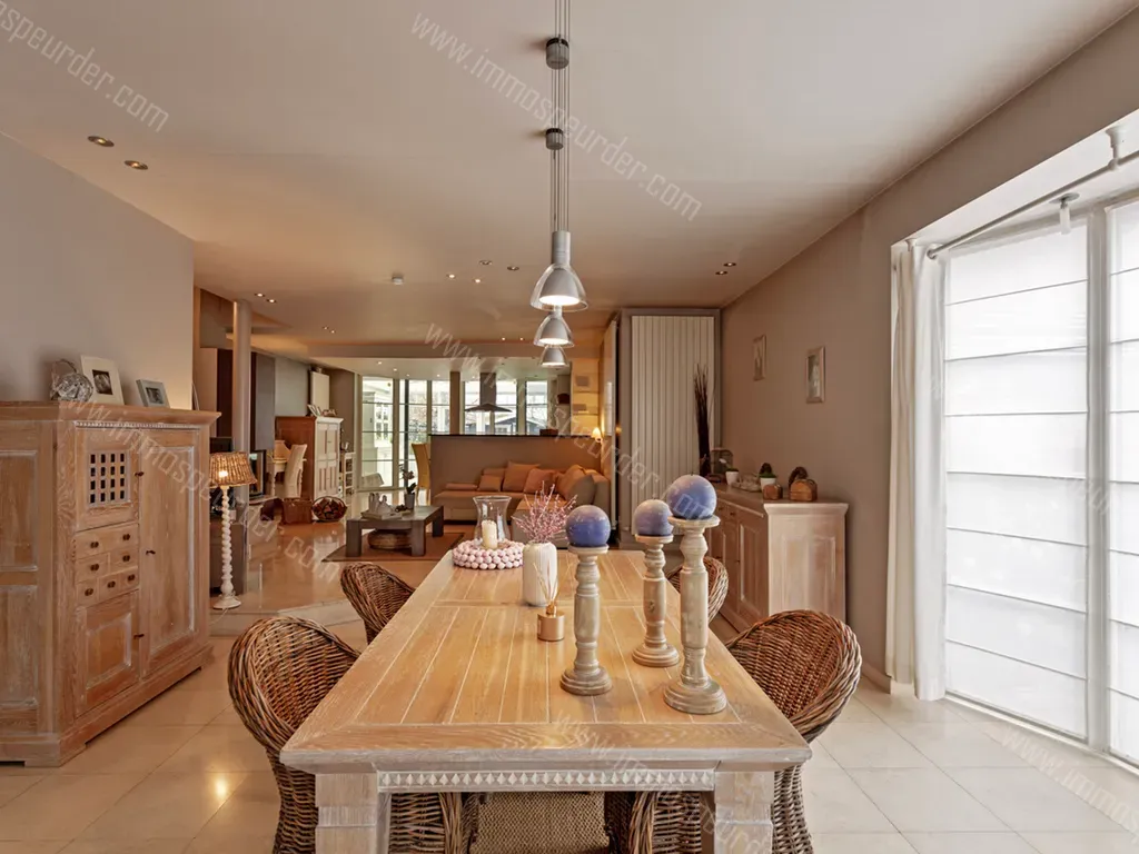 Deze woning heeft een bewoonbare oppervlakte van +/-236m² en bestaat uit: inkomhal met vestiaire - toilet met lavabo - woonkamer met open haard + eetkamer (+/-43m²) + volledig uitgeruste open keuken (vaatwasser, elektrische kookplaat, dampkap, spoelbak, koelkast, diepvriezer) (+/-24m²) met aansluitende veranda (+/-22m²) met toegang tot de tuin - berging/wasplaats.