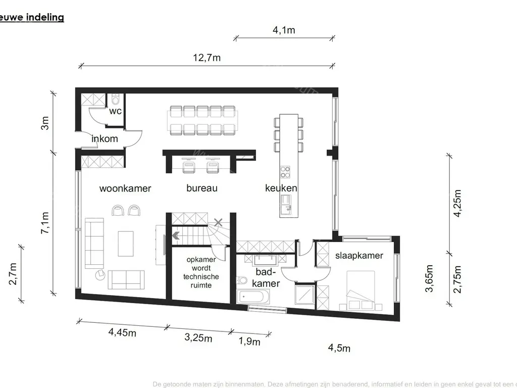 De indeling van de eerste verdieping: