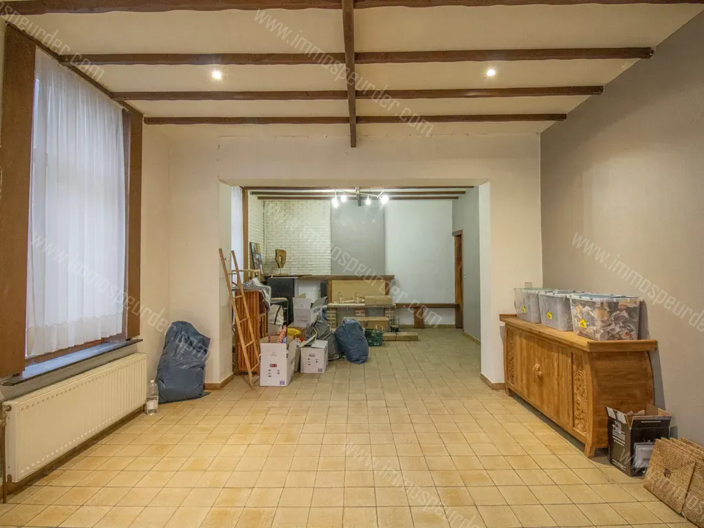 Au rez-de-chaussée, un grand séjour de +/- 42 m², une cuisine et une salle de bain avec WC.