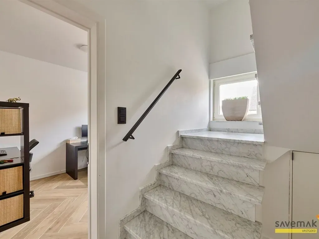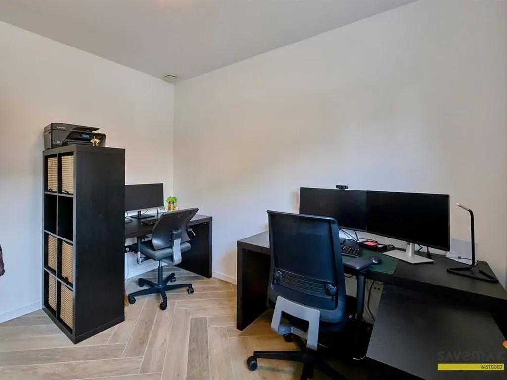 Over de hele woning vind je ingemaakte kasten. Je zal zien dat ook de wasmachine en droogkast netjes weggewerkt werden.
