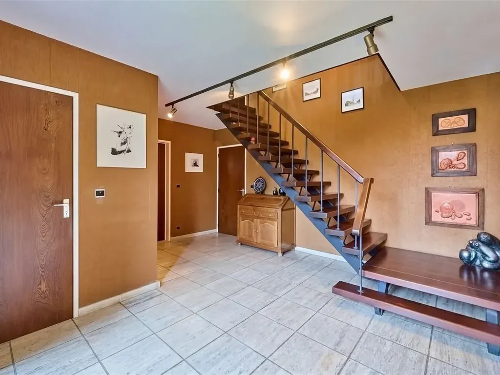 De rijkelijk ogende inkomhal verklapt meteen de stijl van de woning: ruimtelijk, doordacht en degelijk.