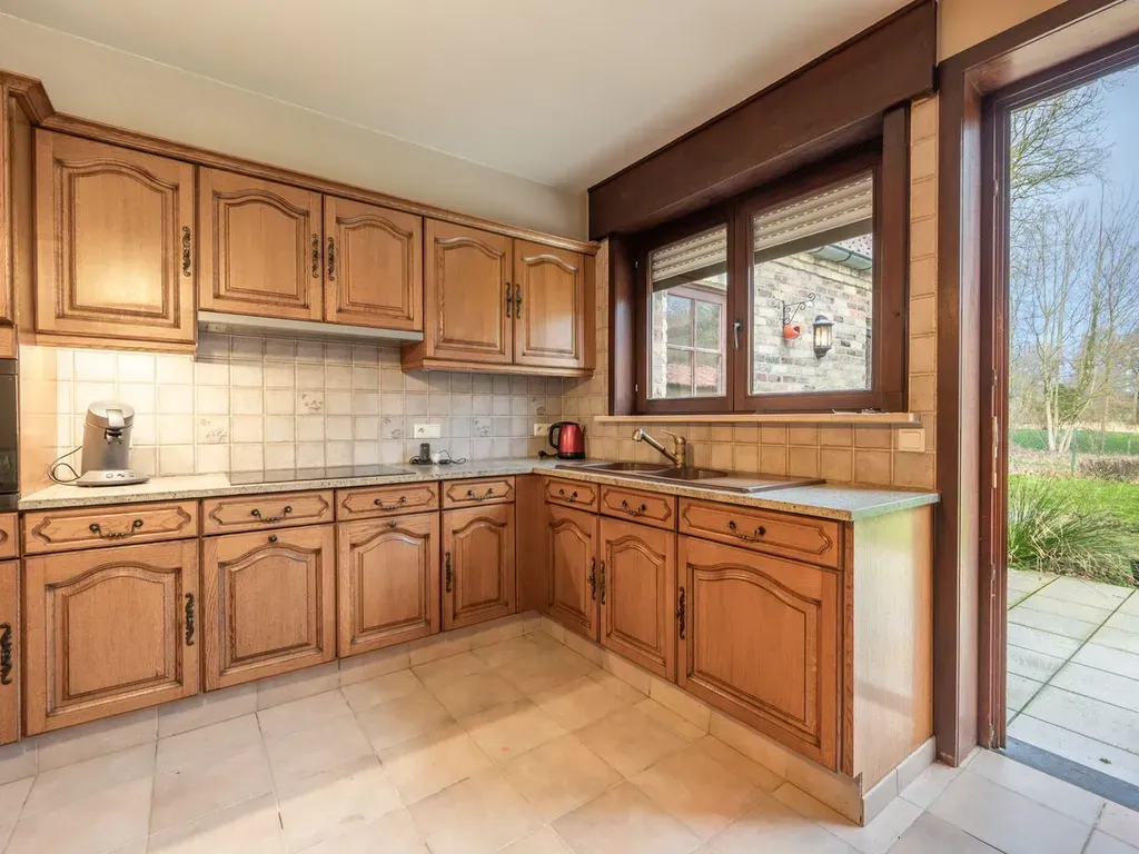 Indeling als volgt: inkomhal met gastentoilet, praktische berging, lichtrijke woonkamer met zit- en eethoek, aansluitend geïnstalleerde keuken; beiden uitgevend op het aangename terras, badkamer met douche, ligbad en lavabo met meubel, twee volwaardige slaapkamers en een ruime, inpandige garage. De woning is volledig gelijkvloers ingericht, wat zorgt voor optimaal wooncomfort. Bovendien beschikt de woning over een ruime zolderverdieping die eenvoudig kan worden ingericht tot twee extra slaapkamers of een hobbyruimte. De verzorgde tuin en de rustige, groene omgeving maken het geheel compleet.