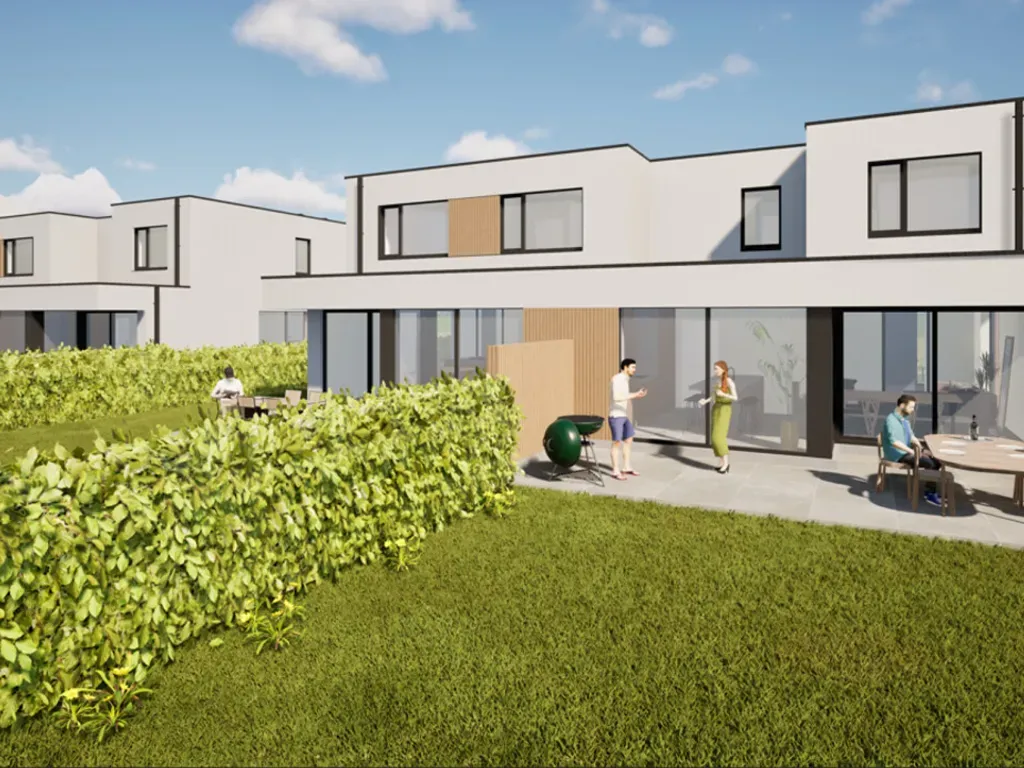 De opbouw van deze 4 halfopen nieuwbouwwoningen wordt binnenkort gestart.