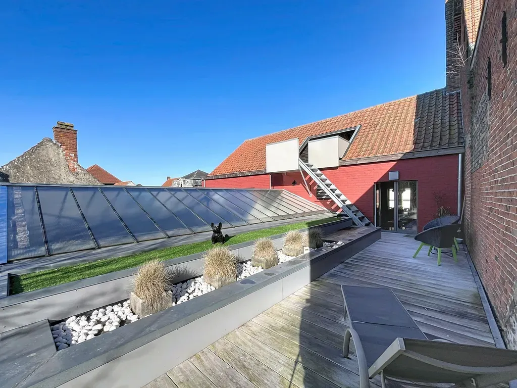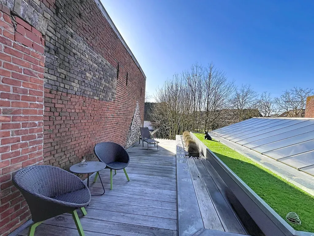 - Twee ruime terrassen met prachtig zicht over het centrum. Mogelijkheid tot creatie van een extra ruimte onder het dak (slaapkamer/buitenkeuken/ ...)