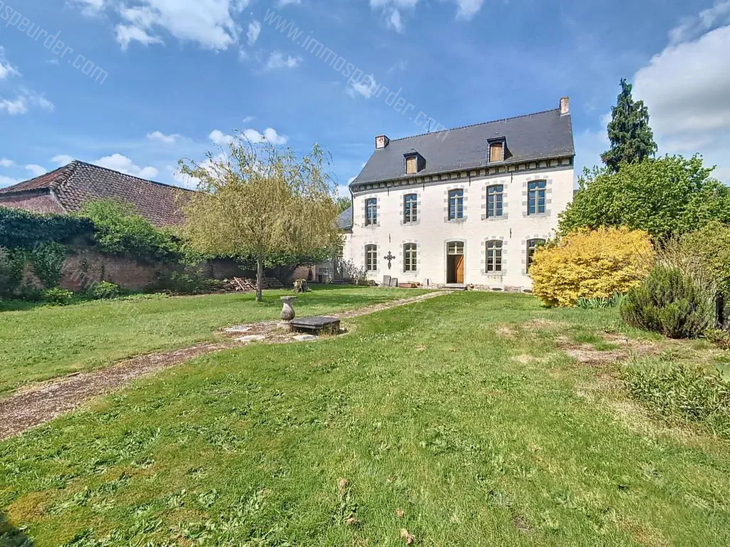 Rue Lieutenant de Saint-Martin 1 - 7050 Masnuy-Saint-Pierre - Masnuy-Saint-Pierre, Rue Lieutenant de Saint-Martin 1 Ancien presbytère rénové avec goût, dans le respect de son caractère, offrant des volumes très apréciables et des matériaux nobles parfaitement conservés (tommetes, pierres bleues, boiseries,...). Composé comme suit : Au sous-sol : 4 caves voûtées Au rez-de-chaussée : un Hall d'entrée, un bureau, deux salons très charmants (moulures, cheminées,...), une salle-à-manger communiquant avec la cuisine et la buanderie, et une salle de douche parfaitement équipée et rénovée (douche, WC, lavabo simple). A l'étage : Un hall de nuit, quatre chambres (dont les surfaces se situent entre 15 et 28m²) et deux dressings, une salle de bains (grande baignoire à jets, double vasque, WC). Combles : 129 m² de grenier aménageable; la charpente apparente est splendide et le volume permet pas mal d'aménagements. Divers : Un garage (à rue) et un vaste atelier de 48 m² situé dans le fond du jardin. Chauffage central gaz, installation électrique conforme jusque 2031, double vitrage bois, adoucisseur d'eau, toiture en TB état (à isoler). Prix indicatif : 525 000,- euros Informations non contractuelles et n'engageant pas la responsabilité de l'agent immobilier.