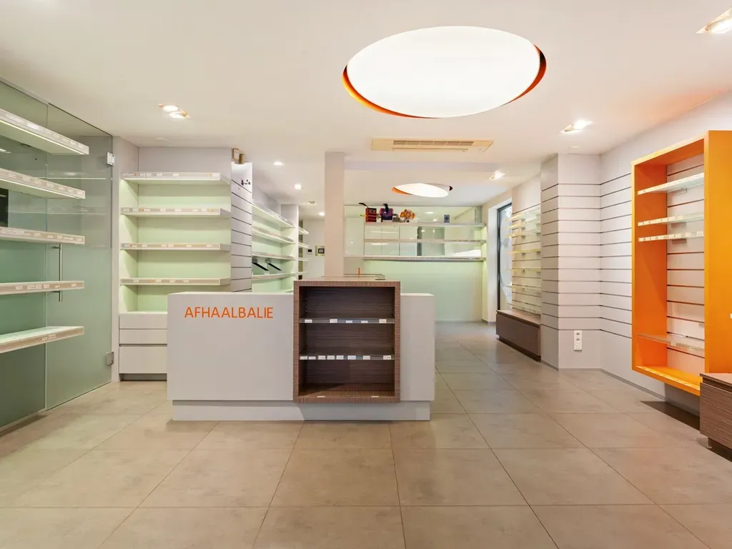 Het gelijkvloers, momenteel ingericht als apotheek, kan volledig of gedeeltelijk als commerciële ruimte worden gebruikt.