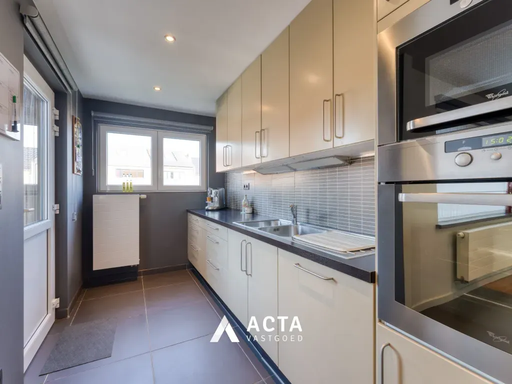 Via de ruime inkomhal met vestiaireruimte bereikt u de garage met automatische sectionaalpoort en ingemaakte kasten. Aansluitend bevindt zich een praktische werkruimte met extra opbergkasten. Verder is er een wasplaats met aansluitingen voor wasmachine en droogkast. De tuin is onderhoudsvriendelijk aangelegd met meerdere terrassen en is zuidoost georiënteerd, waardoor u de hele dag door van de zon geniet. Achteraan bevindt zich bovendien een terras waar u kan genieten van de avondzon.