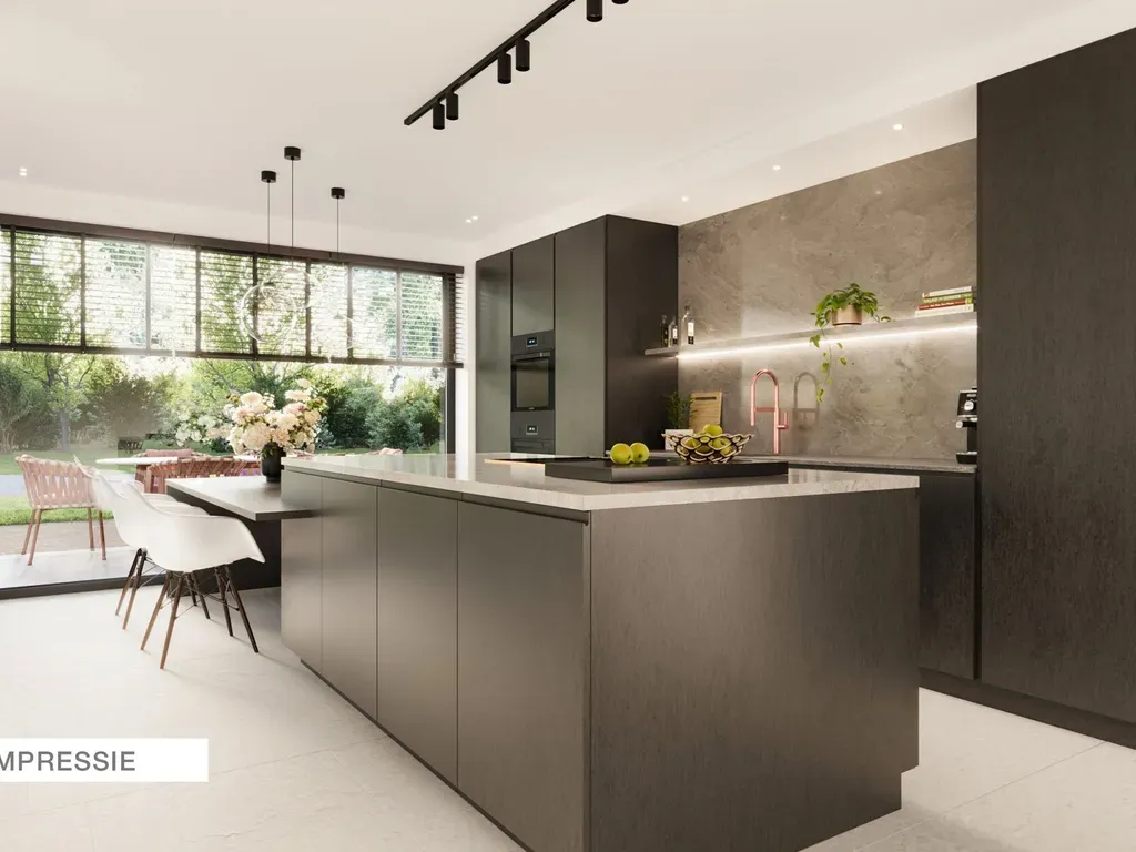 De open keuken is luxueus uitgerust met onder meer een Quooker, BORA-kookplaat, keramisch werkblad en een royaal kookeiland. Aansluitend bevindt zich een praktische berging.