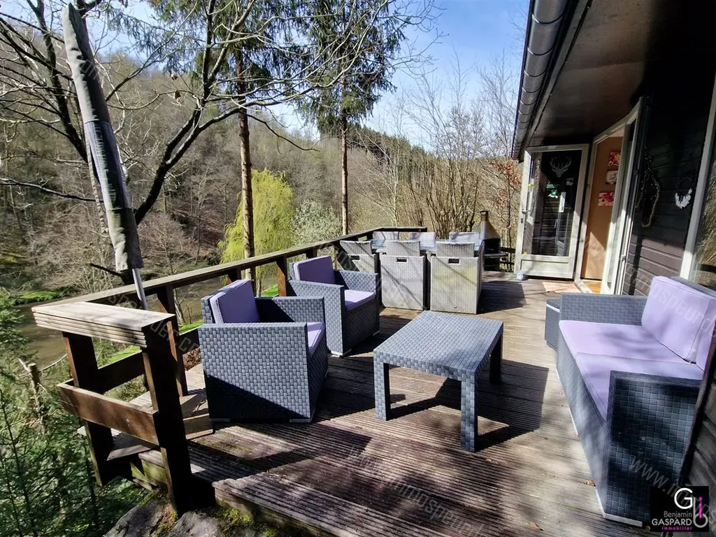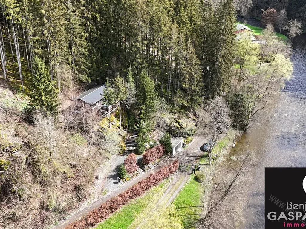 Chemin du Vieux Pont 11 - 6983 Ortho - ORTHO: C'est dans le lieudit "la Ferme au Pont" qu'est niché ce petit coin de paradis, en pleine zone forestière. Ce petit chalet perché sur les hauteurs et en bordure de l'Ourthe en amont du barrage de Nisramont vous attend de pied ferme pour vous offrir un logement type seconde résidence en pleine nature et totalement isolé des zones urbaines mais non loin des commodités (La Roche-en- Ardenne). Du point de vue technique il est chauffé par des convecteurs gaz reliés à une citerne aérienne Antargaz avec contrat de location, cette citerne dessert également la cuisinière à gaz et le chauffe eau. La toiture a été entièrement rénovée par des panneaux tuiles avec isolation intégrée, l'électricité est en ordre jusqu'en 2032! Il n'est pas relié ni raccordable à l'eau de par sa localisation mais il est équipé d'un système alternatif. Il vous offre une superficie habitable de 43 M², une terrasse extérieure avec vue imprenable sur la vallée de l'Ourthe de plus de 30 M² et pas moins de 2430 M² de terrain.Il est vendu entièrement meublé. Vous l'aurez compris, ce petit bijou est une opportunité à ne pas manquer pour les amoureux de la nature et du calme. Visites et renseignements en agence.