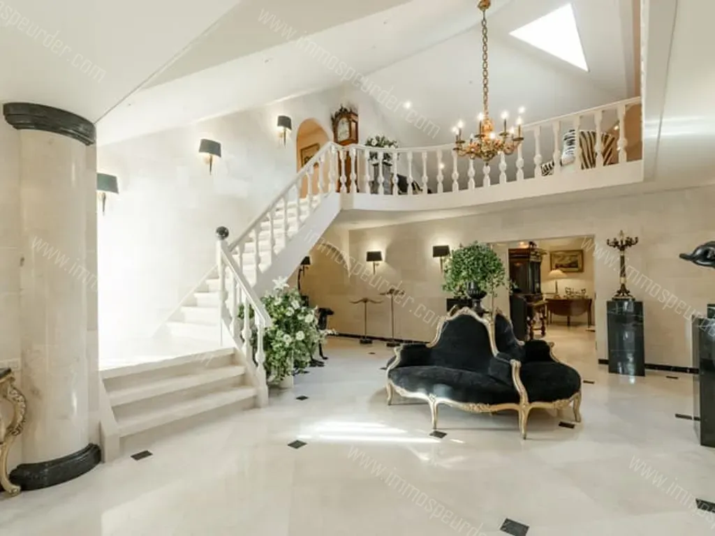 Via de marmeren trap bereikt u de bovenverdieping, waar een stijlvolle bibliotheek/bureau werd ingericht. Verder vindt u hier nog een ruime slaapkamer, badkamer, twee grote bergingen en een indrukwekkende biljartk...