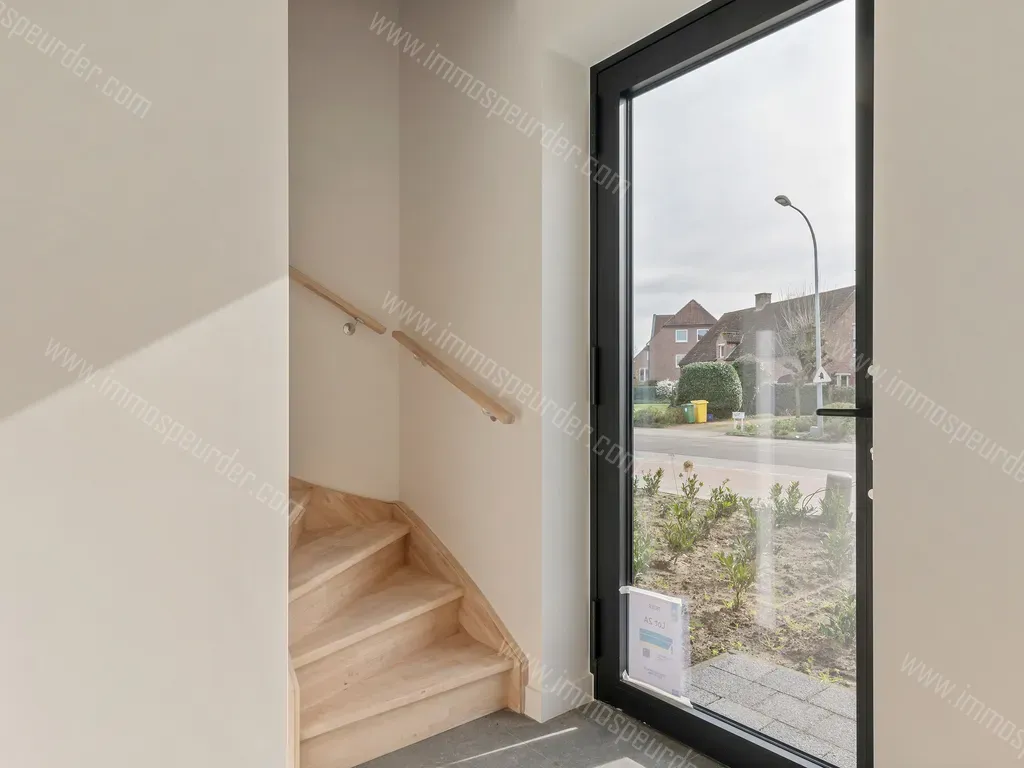 Inkomhal met gastentoilet en houten trap naar de verdieping. De leefruimte geniet van veel natuurlijk daglicht dankzij de raampartijen aan 3 zijden. Hier is plaats voor een zithoek, eetkamer en de open keuken met eiland. Aansluitend een praktische berging / wasplaats.