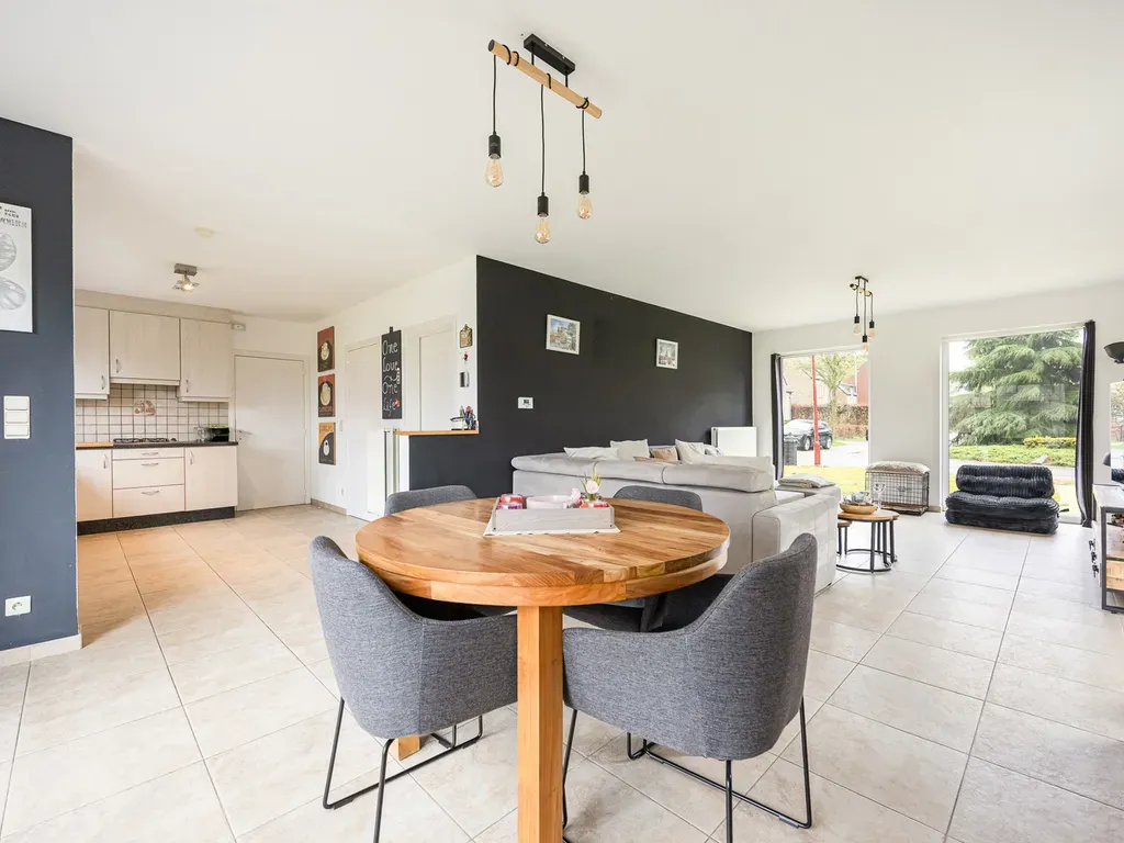 Oude Braak 9 - 2310 Rijkevorsel - Deze charmante open bebouwing is rustig gelegen in het hart van Rijkevorsel, omgeven door groen en toch op korte afstand van winkels, scholen en belangrijke invalswegen. Hier geniet u van een aangename woonomgeving waar rust en bereikbaarheid perfect hand in hand gaan. Via de ruime inkomhal met grote raampartijen en een gastentoilet betreedt u deze verzorgde woning. De lichtrijke woonkamer met aansluitende eetkamer vormt een gezellige en open leefruimte, met een mooi zicht op de tuin en een aangename connectie met buiten. De halfopen, volledig geïnstalleerde keuken sluit hier naadloos op aan en is uitgerust met een gasvuur, een ingebouwde ijskast en een combi-oven. Aansluitend vindt u een praktische berging en een aparte wasplaats met rechtstreekse toegang tot de tuin, wat het dagelijkse comfort extra verhoogt. Op de eerste verdieping bevinden zich drie volwaardige slaapkamers en een comfortabele badkamer met ligbad, douche, enkele lavabo en toilet. De volledig omheinde tuin op een perceel van 740 m² is een absolute troef en biedt alle ruimte om in alle privacy te genieten van het buitenleven. Het noordwest georiënteerde terras maakt het plaatje compleet voor gezellige momenten in de namiddag- en avondzon. Verder beschikt de woning over een inpandige garage, een ruime oprit en bijkomende parkeermogelijkheid naast de woning, wat zorgt voor extra praktisch gemak. Met een EPC-score van 198 kWh/m² (label B) is deze woning bovendien energiezuinig en instapklaar. De CV-ketel werd vernieuwd begin 2018. De woning wordt momenteel verhuurd.Troeven: Rustige en groene ligging nabij centrum Lichtrijke leefruimte met sterke connectie naar de tuin Volledig omheinde tuin met optimale privacy Inpandige garage en ruime parkeermogelijkheden Energiezuinig (EPC label B) en instapklaar