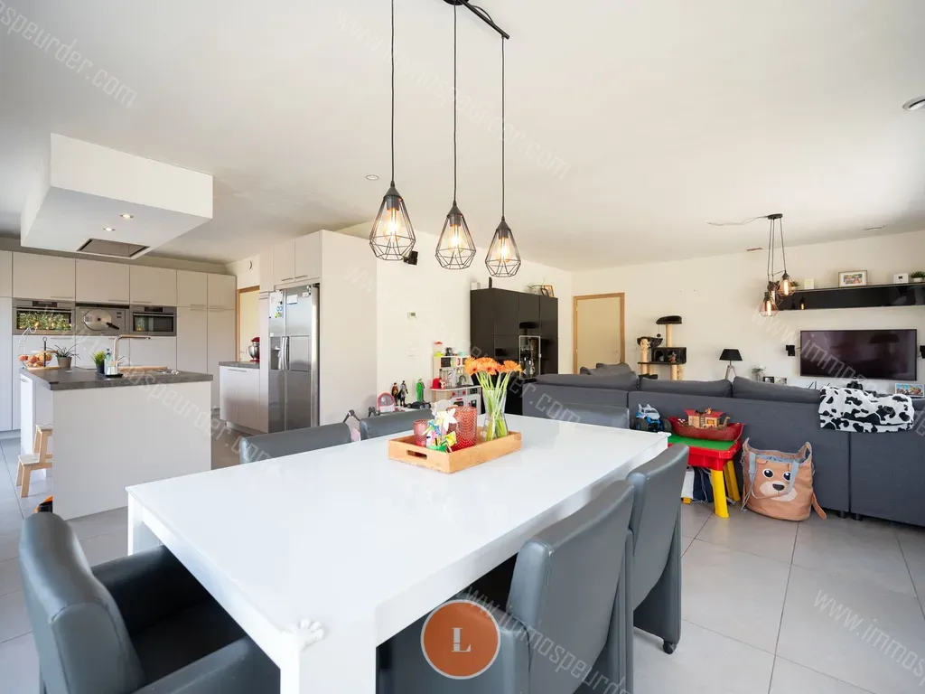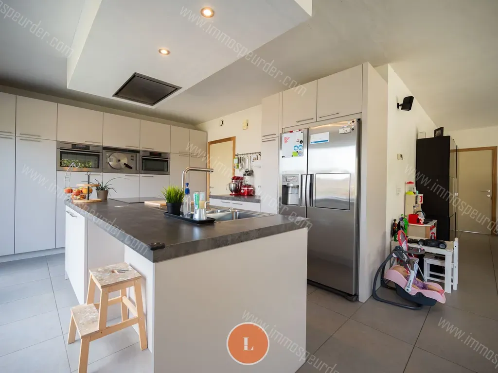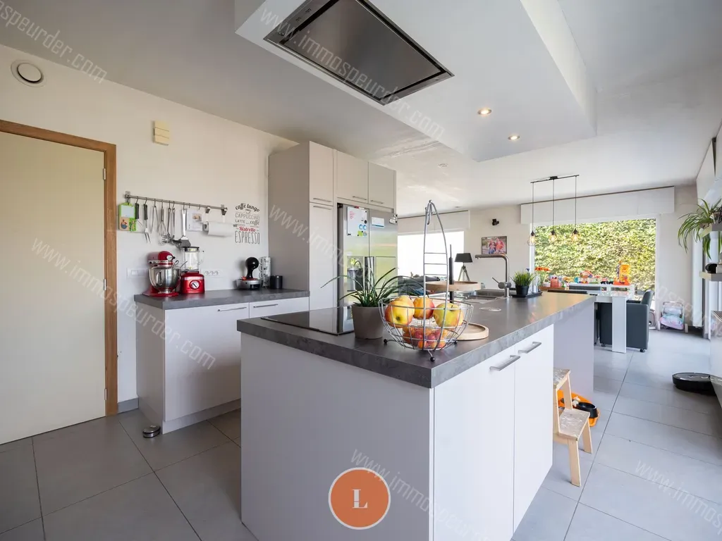 Via de inkomhal met apart gastentoilet kom je binnen in de open en lichtrijke leefruimte met zicht op de tuin. De hyper-geïnstalleerde keuken maakt hier integraal deel van uit met Amerikaanse frigo, inductiekookplaat, oven, stoomoven, microgolf en vaatwas. Aanpalend wasplaats/berging en inpandige garage.