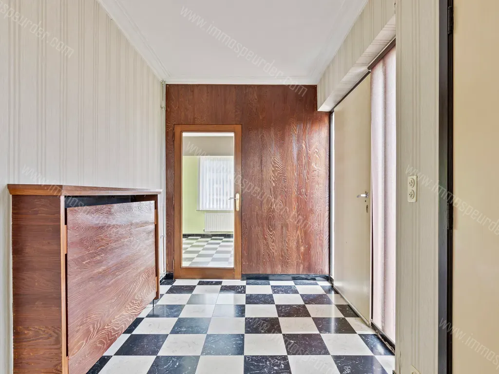 De woning bevindt zich volledig op het gelijkvloers en bestaat uit een inkomhal met apart toilet. Verder bereikt men een lichtrijke woonkamer met haard die de zit-en eetplaats scheidt met aansluitend de ingerichte keuken. Via de keuken heeft men toegang tot de enorme veranda waar het aangenaam vertoeven is.