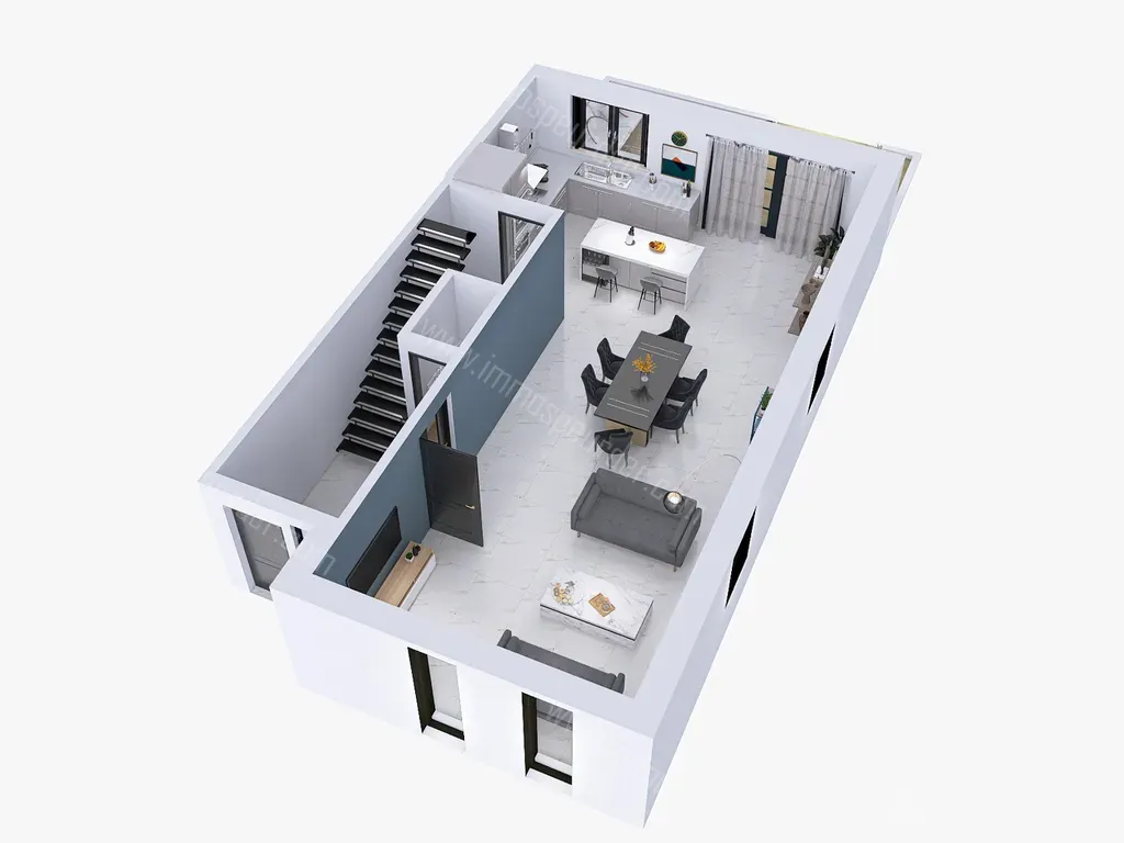 124A Rue Georges Berotte - 4470 Saint-georges-sur-meuse - MAISON NEUVE TROIS FACADES COMPOSEE DE 4 CHAMBRES AVEC TERRASSE, PETIT JARDIN ET EMPLACEMENTS DE PARKING VENDUE EN GROS OEUVRE FERME (Fondations, murs porteurs, murs intérieurs, charpente, planchers entre les étages, toit, isolation, portes et châssis, parements de façade réalisés conformément aux plans). Devis disponibles sur demande pour la réalisation du second oeuvre et des finitions. - COMPOSITION DU LOT 4 / -Rez-de-chaussée: un hall d'entrée de 7 m², un séjour de 36 m², une cuisine de 23 m², une buanderie de 4m², une toilette indépendante, une cage d'escalier - 1er étage: un hall de nuit de 10 m², une chambre de 16 m² avec salle de douche attenante de 3,5 m², un dressing/bureau de 9,5 m², deux chambres de 12 m²- 10,5 m², une salle de bains de 6 ,5 m², une buanderie de 4 m² - COMBLES : env. 35 m² aménageables. EXTERIEUR : à l'arrière de la maison, un espace jardin d'environ 77,5 m² , sur lequel peut être construite une terrasse de 23,4 m² offrant une belle vue dégagée sur le région, et environ 72 m² sur le côté et à l'avant de la maison. A l'avant, deux emplacements de parking. DIVERS: vente en gros œuvre fermé sous régime TVA (21%), châssis PVC triple vitrage, isolation, système d'égouttage jusqu'au réseau. Idéalement située dans un cadre campagnard tout en étant à proxmité de la E42 (3 km), des écoles (1,7 km) et des commerces du centre de Saint-Georges (2 km). Informations et projections non-contractuelles communiquées à titre informatif.