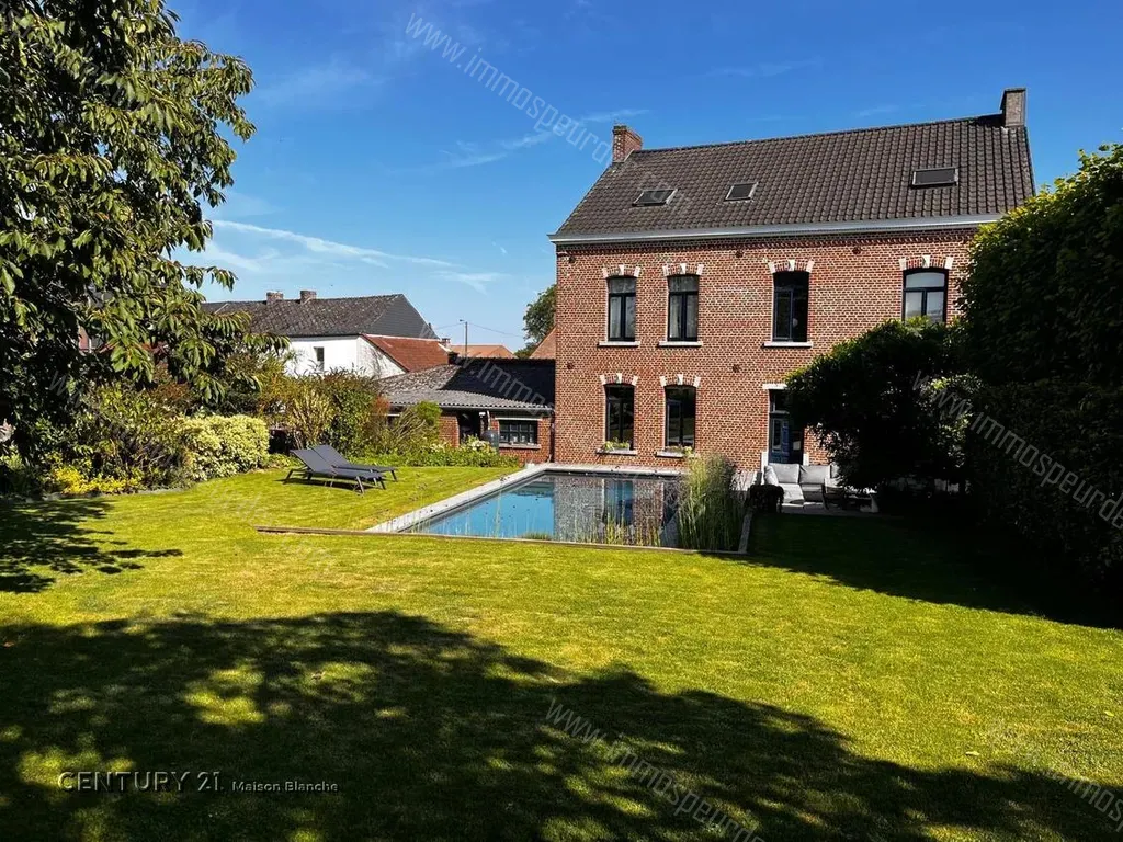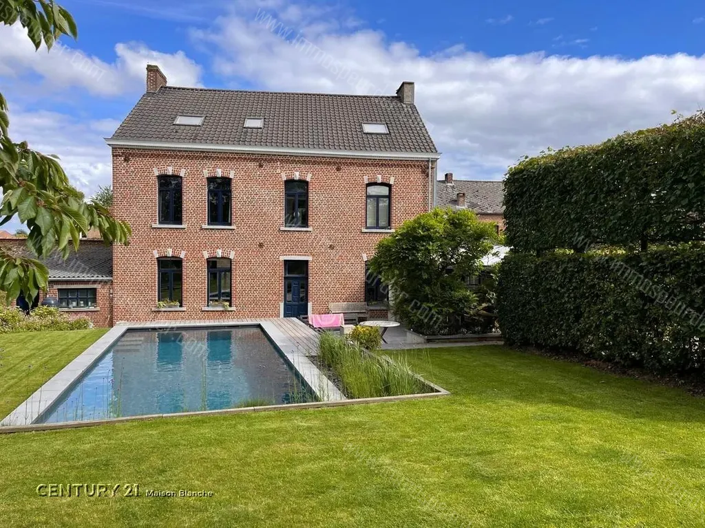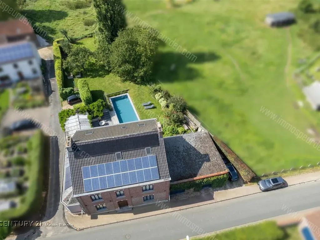 Rue Gustave Linet 39 - 1495 Sart-Dames-Avelines - Century 21 Maison Blanche est fier de vous présenter cette splendide maison bourgeoise magnifiquement rénovée et bénéficiant d'un excellent score PEB de grade C! La maison est notamment 100% autonome en électricité et en eau chaude (grâce aux panneaux photovoltaïques) et bénéficie d'un puits et d'une citerne d'eau de pluie. Ici, les espaces sont vastes et lumineux, les rénovations sont récentes, et mêlent judicieusement le cachet de l'ancien et une pointe de modernité. Via un hall d'entrée majestueux, vous accédez d'une part au grand living avec poêle à bois, ouvert sur la salle à manger avec vue sur le jardin, et d'autre part au bureau de 25m², idéal pour exercer une profession libérale. La cuisine, neuve, a été créée sur mesure dans un style résolument contemporain, mais savamment combiné aux éléments d'origine de la pièce (carreaux de ciment, briques à nu, éléments en bois massif), avec un coin à déjeuner donnant sur la terrasse et la pergola. Le rez-de-chaussée compte également un WC et une grande buanderie, et, de l'autre côté de la maison, un double garage et des espaces "atelier" de plus de 30m². Au 1er étage, 4 chambres de 15 à 25m² s'articulent autour du hall de nuit, ainsi qu'une lumineuse salle de bains et d'un espace dressing. Au 2ème étage, le grenier a été aménagé en deux chambres supplémentaires, une salle de douches, un salon/salle de jeux et un espace de stockage; l'étage idéal pour vos ados en demande d'autonomie! A l'extérieur, le terrain se développe sur une superficie de 11 ares et se décline en une gigantesque terrasse avec grande pergola et barbecue en dur, un espace détente avec la jolie piscine chauffée récemment installée, un beau jardin d'agrément, mais aussi 3 places de parking de part et d'autre de la maison et des accès latéraux très pratiques au quotidien! Cette petite pépite et la magnifique vue dégagée qu'elle offre sur les campagnes environnantes valent vraiment le détour et vous accueilleront avec plaisir lors d'une visite à planifier au 067/87.45.00!