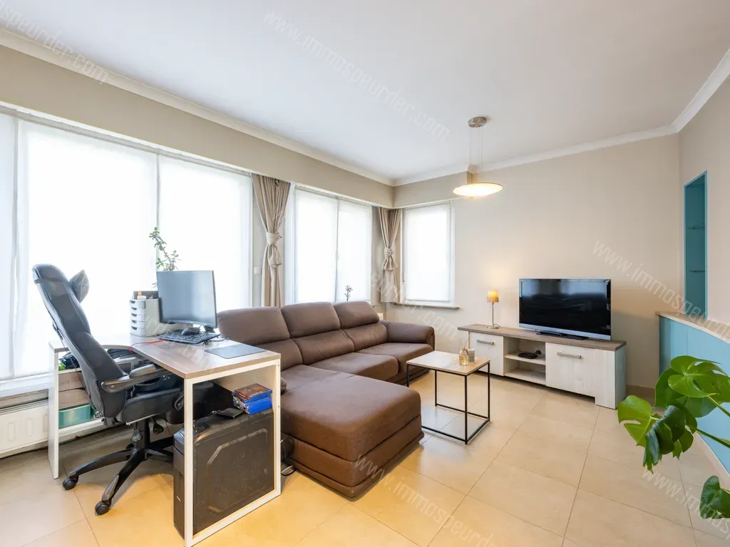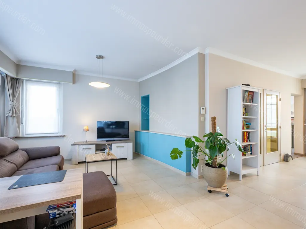 De L-vormige leefruimte op het gelijkvloers baadt in natuurlijk licht.