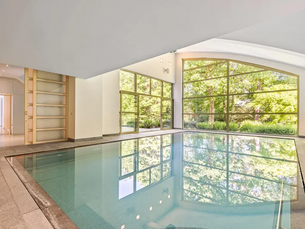 Villa onder moderne architectuur met binnenzwembad in de meest gegeerde villawijk van Schilde. In de directe omgeving zijn scholen en winkels. Bovendien heb je een vlotte verbinding met de stad en de snelweg. Volledige privacy is verzekerd dankzij een mooi aangelegde volwassen tuin.