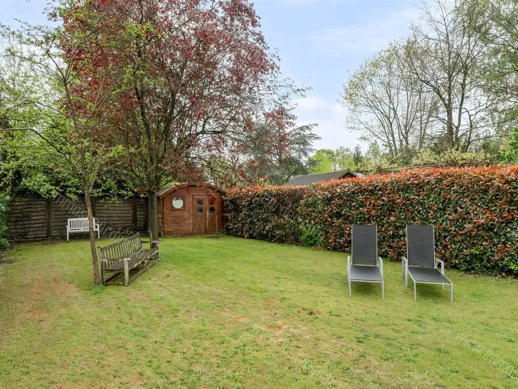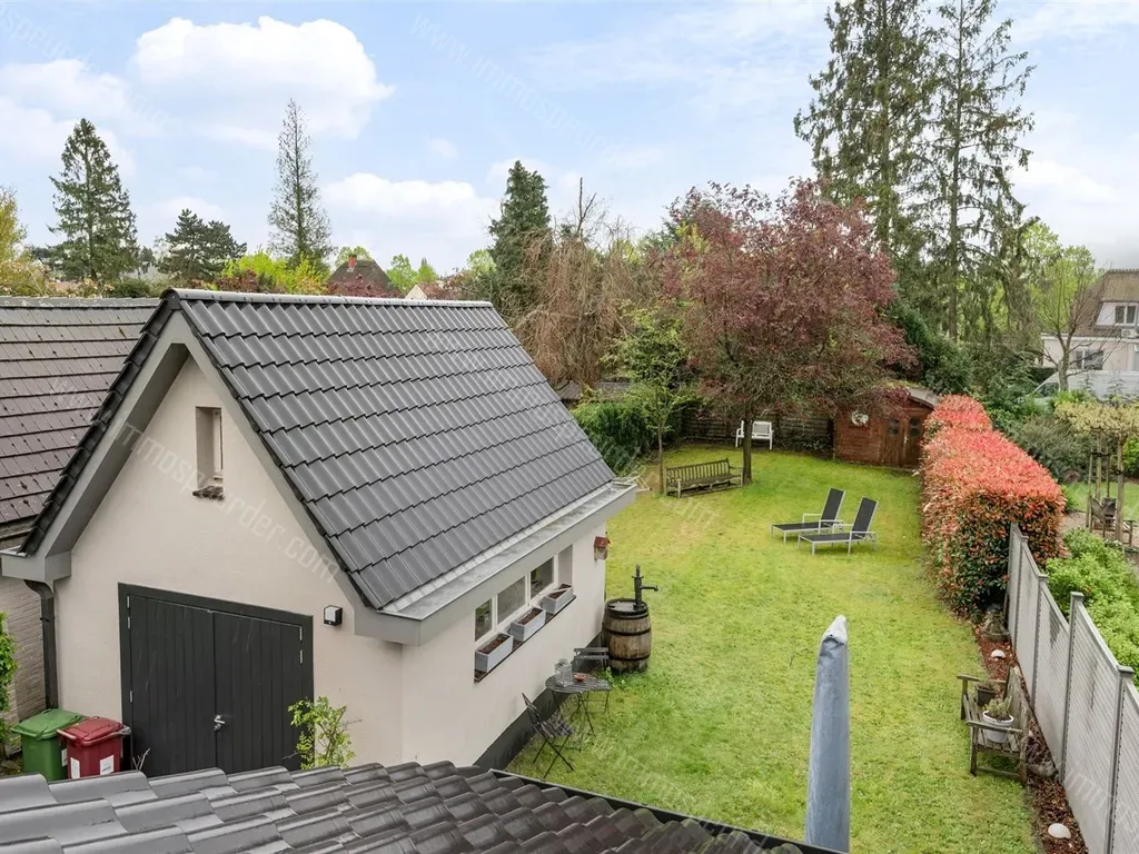 Aparte garagebox in de tuin. De tuin is afgesloten met een poort.