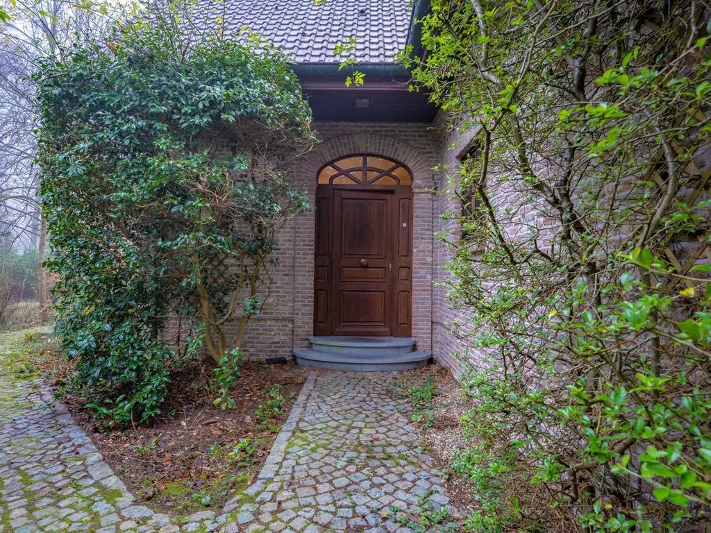 Via een oprijlijn betreedt u het domein met als achterbuur het 149 ha groot Peerdsbos. Midden de oprijlijn bevindt zich de garage voorzien voor 3 wagens (berging en sanitair tevens voorzien).