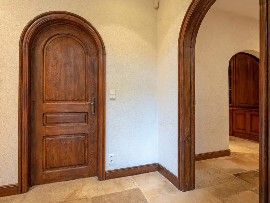 De woning zelf is voorzien van een centrale inkomhal, een wasruimte met doucheruimte, een apart toilet, een keuken met erker en zicht op de tuin, een royale living (92m²) met houthaard.