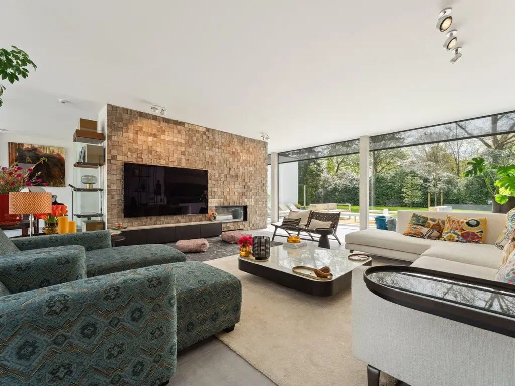 Via de stijlvolle inkomhal met ingemaakte kasten en een elegant gastentoilet betreedt u het hart van de woning. De centrale leefruimte baadt in natuurlijk licht en biedt rondom zicht op de prachtig aangelegde tuin. Een sfeervolle houtkachel vormt het warme middelpunt van de living en zorgt voor een gezellige, huiselijke sfeer. De leefruimte loopt naadloos over in de eetkamer en de volledig uitgeruste Bulthaup-keuken, waar functionaliteit en esthetiek perfect in balans zijn.