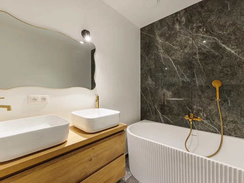 Badkamer 2 met wastafel met meubel en inloopdouche (ensuite aan de masterbedroom).
