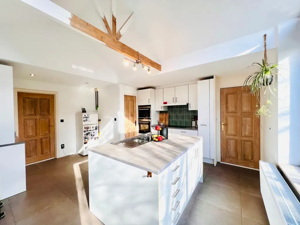 Wat deze eigendom bijzonder maakt? De vele mogelijkheden die ontstaan door de bruikbare oppervlakte en dubbele ingang: grote gezinnen, gezin die veel ruimte wenst, wonen-werken combineren – kangoeroewonen – deels eigen bewoning, deels verhuren, …