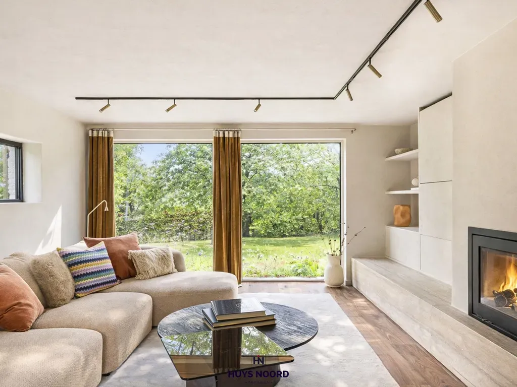 Deze leidt u naar een cosy zitkamer met open haard en zicht op uw prachtig landelijk aangelegde tuin.