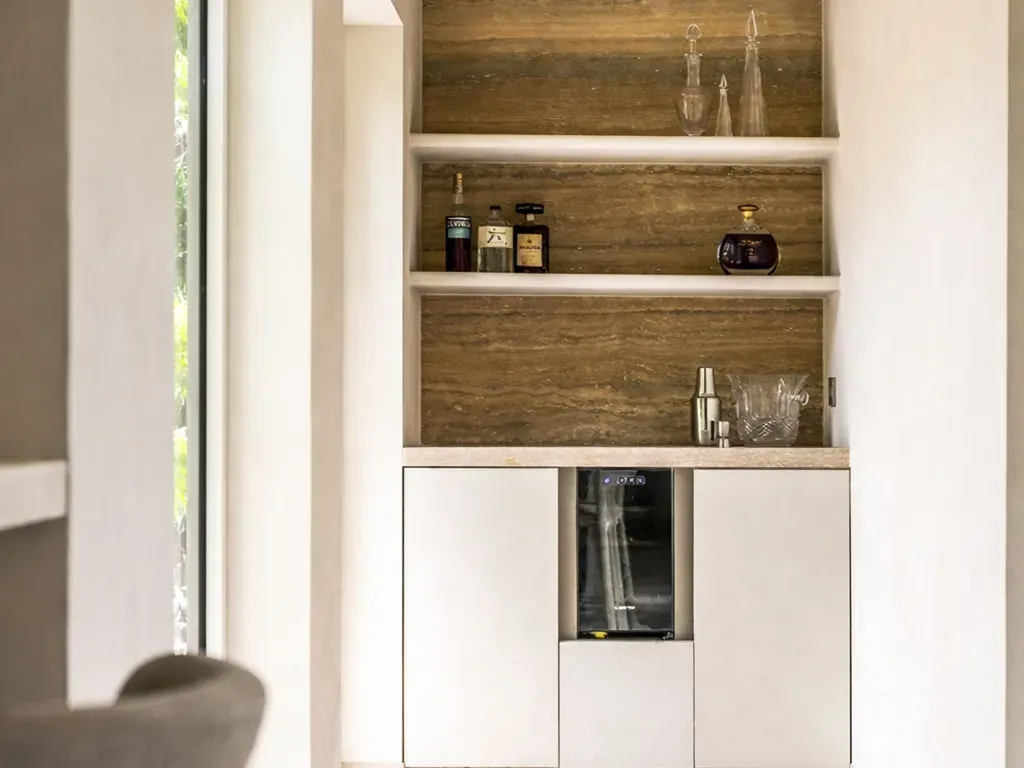 Het interieur ademt een verfijnde elegantie, gekenmerkt door een uitzonderlijk oog voor detail en hoogstaande afwerkingsgraad.
