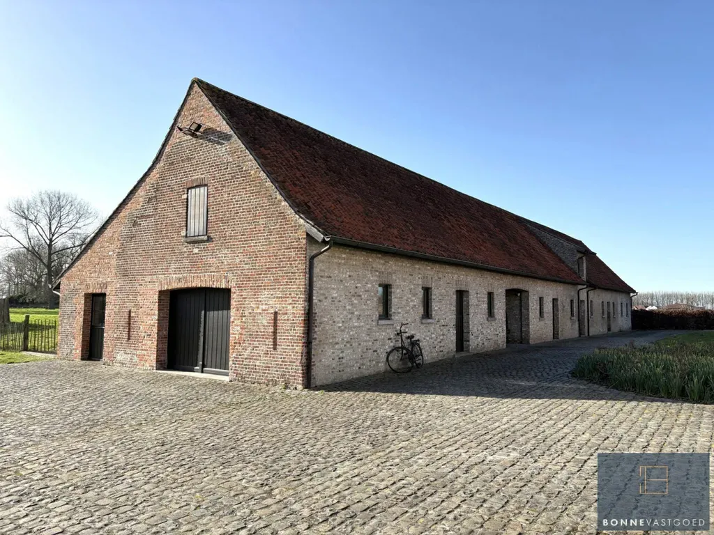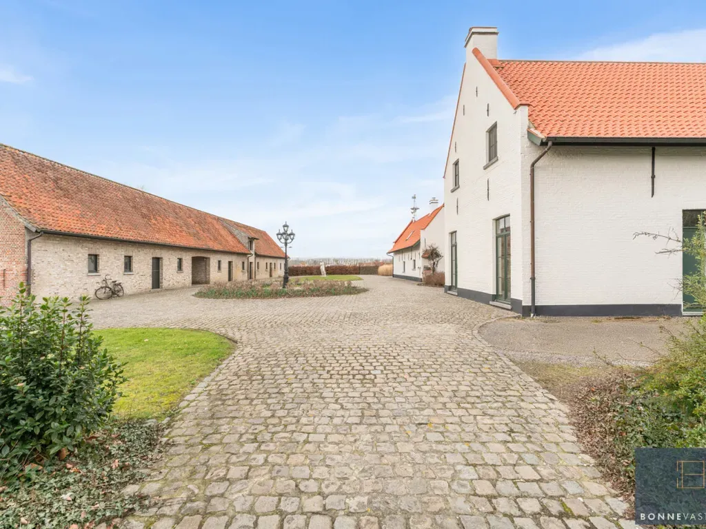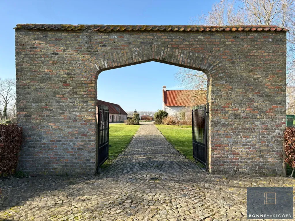 Aardenburgseweg 154 - 8310 Sint-Kruis - In een uitzonderlijk rustige en groene omgeving, midden in het open polderlandschap, bieden wij u deze prachtige en veelzijdige eigendom aan. Een zeldzame kans voor wie op zoek is naar ruimte, natuur, privacy én karakter, op een strategische ligging tussen Brugge en Damme, vlak bij de Damse Vaart en het gekende paardenpension De Blauwe Zaal. Het domein omvat een karaktervolle hoofdwoning, een volwaardige aparte woonst, een gerenoveerde schuur met stallen en een aangenaam poolhouse. Omringd door uitgestrekte weilanden en groen geniet u hier van absolute rust en volledige privacy. Dankzij de aanwezige stallen en weides is deze eigendom uitermate geschikt voor het houden van paarden, schapen, herten of andere dieren, maar ook voor wie simpelweg wil genieten van het buitenleven in alle vrijheid. De hoofdwoning Bij het betreden van de woning komt u in een charmante inkomhal die toegang geeft tot de sfeervolle eetkamer. Deze ruimte ademt authenticiteit dankzij de zichtbare houten balken, de rustieke vloer en het haardvuur. Dankzij het aanwezige gastentoilet is deze ruimte ook perfect inzetbaar als gezellige feest- of ontvangstruimte. Aansluitend bevindt zich de keuken, met een prachtig uitzicht op het omliggende groen. Naast de keuken ligt de charmante voutekamer, een bijzonder aangename leefruimte waar u volledig tot rust komt terwijl u uitkijkt over de tuin en het open landschap. Op de bovenverdieping bevinden zich vier slaapkamers. Eén kamer springt meteen in het oog door de indrukwekkende originele gebintes, die het landelijke karakter extra benadrukken. Twee andere slaapkamers beschikken over een eigen mezzanine, ideaal als speelse slaaphoek, bureau of extra bergruimte. Verder is er op deze verdieping ook een badkamer aanwezig. Aparte woonst / bijgebouw Aansluitend aan de hoofdwoning bevindt zich een volwaardige aparte woonunit, ingericht als zelfstandige woning. Deze beschikt over een gezellige leefruimte, een volledig uitgeruste keuken en één tot twee slaapkamers, elk met een eigen badkamer voorzien van douche en lavabo. Deze wooneenheid biedt tal van mogelijkheden: kangoeroewonen, gastenverblijf, praktijk- of kantoorruimte, of zelfs verhuur. Schuur en stallen De indrukwekkende schuur (42,5mx10,5m) biedt een waaier aan mogelijkheden. Ze is ingedeeld in meerdere ruime zones, beschikt over een aparte kitchenette en boven de stallen bevindt zich een uitgestrekte open ruimte over de volledige breedte van het gebouw. De zichtbare originele gebintes zorgen voor een authentieke, landelijke uitstraling. Ideaal als opslagruimte, atelier, hobbyruimte of voor verdere ontwikkeling. De schuur werd volledig gerenoveerd, met een nieuwe draagvloer en met respect voor alle originele elementen.