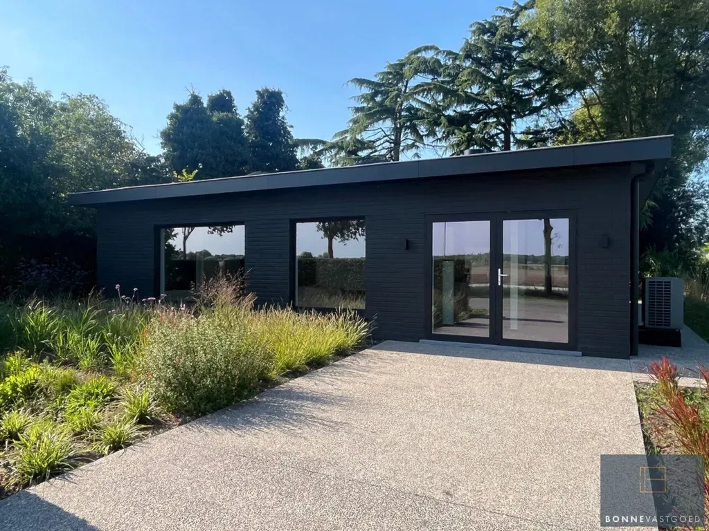 Buiten: aangelegde voortuin met oprit en achtertuin met betonplaat voor tuinhuis. Contacteer Bonne Vastgoed 7 op 7 voor meer info via 0468/10.40.40 of info@bonnevastgoed.be