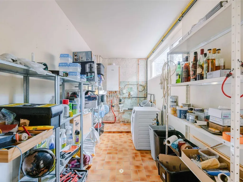 U betreedt de woning via de inkomhal, die toegang geeft tot de leefruimte en een aparte kamer aan de voorzijde, ideaal als bureau of hobbyruimte. De woonkamer sluit aan op de recente keuken en vormt samen een aangename leefomgeving met veel natuurlijk licht dankzij de aanwezige lichtkoepels. Verder beschikt het gelijkvloers over een grote berging/wasplaats en een functionele badkamer met ligbad, lavabo en toilet.