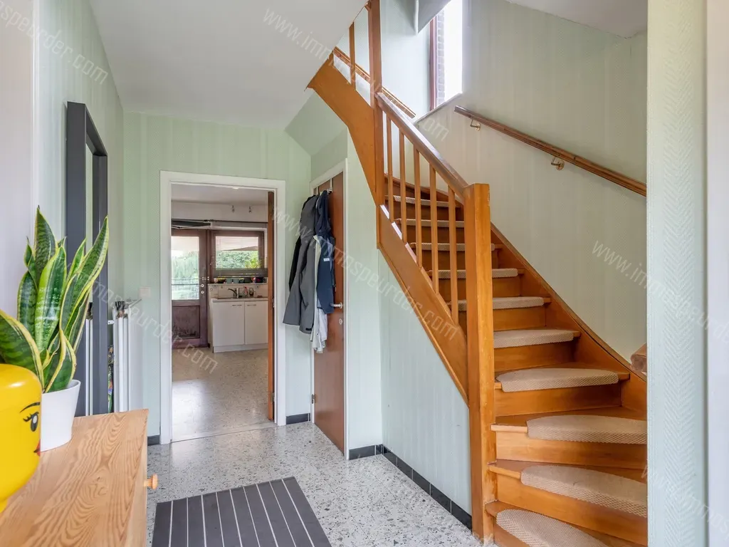 Via de voordeur krijgen we toegang tot de inkomhal van de woning. Hier bevindt zich een apart toilet en een kleine bergruimte onder de trap. De inkomhal brengt ons verder naar de keuken aan de achterzijde van de woning, de ingerichte keuken meet ongeveer 12,5 m². Via de keuken wandel je naar de ruime leefruimte met voldoende plaats voor een gezellige zithoek en een eetkamer.