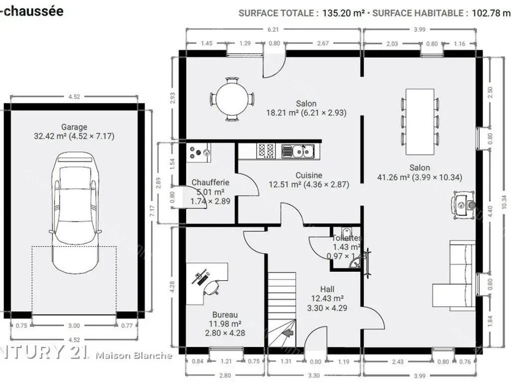 Boulevard Neuf 63 - 1495 Villers-la-Ville - Century 21 Maison Blanche a le plaisir de vous présenter cette charmante villa aux volumes impressionnants, située dans un quartier calme de Villers-la-Ville, à proximité du splendide site de l'Abbaye, du centre du village, de ses commerces et de la gare. Construite en 2011 et parfaitement entretenue depuis, la maison décline comme suite, sur une surface habitable impressionnante de 285m² habitables: au rez-de-chaussée, un vaste hall desservant le séjour, la cuisine ouverte, un bureau et une buanderie; au premier étage, trois chambres de 25, 22 et 19m², un dressing et une salle d'eau; au deuxième étage, un grenier de presque 80m², carrelé et plafonné, prêt à accueillir tout projet d'aménagement (salle de jeux, chambres supplémentaires, bureaux, ...). A l'extérieur, outre un espace de parking pouvant accueillir 4-5 voitures, un garage de 32m² vous permettra d'abriter votre voiture et/ou de stocker du matériel. Le terrain de 7 ares 28, doté d'une vaste terrasse et de deux abris de jardin, vous offrira les plaisirs du soleil matinal et de fin de journée, tout en vous préservant des fortes chaleurs du temps de midi. Ne tardez pas à fixer rendez=vous pour une visite de ce bien, qui vous offre également tous les bénéfices d'un PEB de grade B! Infos et visites au 067/87.45.00. Faire offre à partir de 590.000€ (sous réserve d'acceptation des propriétaires)