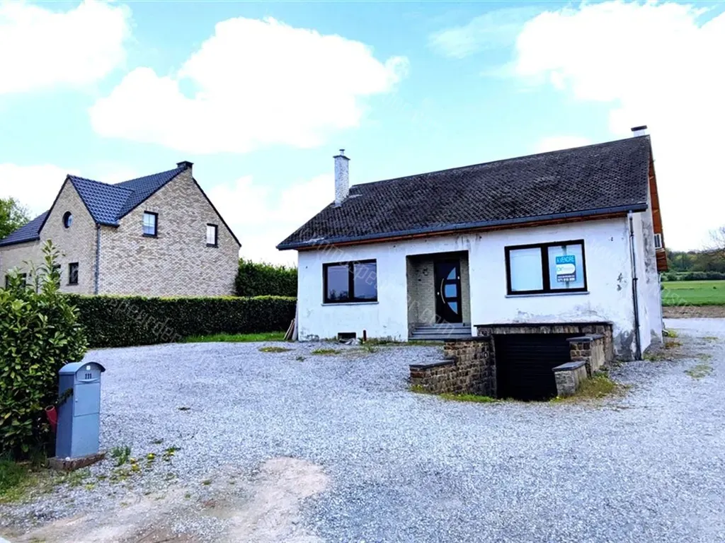 Chaussée de Charleroi - 5070 Vitrival - VITRIVAL-Chaussée de Charleroi 111: Bonne villa 4 façades sur +/- 22 ares pouvant être occupée de plain pied comprenant au Rez: hall d'entrée, agréable pièce de vie de +/- 50m² avec living et cuisine hyper-équipée (taques gaz, hotte, LV, four et frigo USA), bureau ou chambre, dressing, salle de bains avec douche italienne, meuble lavabo et raccordements pour placer une baignoire. A l'étage, palier distribuant 2 grandes chambres, une avec coin toilette et lavabo et l'autre avec placards intégrés. En sous-sols, garage 2 voitures et grande cave-chaufferie. A l'extérieur, grand jardin avec vue sur les champs et terrasse. Commodités: Châssis DV PVC, chauffage central mazout, climatisation dans le living, K7 au bois dans le living, porte de garage sectionnelle télécommandée. Prévoir un budget pour remettre l'électricité aux normes et la façade de la maison. Parking extérieur pour 10 voitures. Terrasse et jardin orientés Sud. PEB G - 717 kwh/m²/an - CU: 20240429016588. Prix: 325.000 € (sous réserve d'acceptation du propriétaire). Mesures intramuros.
