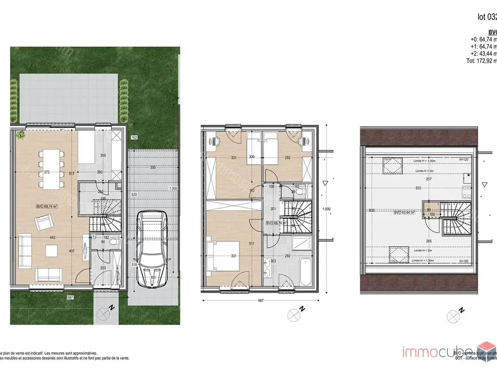 Avenue Joseph Lemaire LOT32 - 4300 Waremme - IMMOCUBE vous propose ce projet neuf « JOSEPH LEMAIRE » de 30 maisons unifamiliales proche du centre Waremme et de toutes commodités !! Ce nouveau projet résidentiel est synonyme de vie agréable dans un environnement vert, tout en étant proche des transports en communs et de l’E40. Maison 3 façades (LOT 32) avec carport composée de 3 chambres (possibilité 5!!). D'une superficie habitable de 137,48 m² + 43,44 m² (grenier) avec un jardin de 203,26 m².Elle est équipée d’un chauffage central au gaz, panneaux photovoltaïques, châssis aluminium super isolant, une toiture en tuile plate avec une isolation de 22 cm de laine minérale, un système de ventilation, une pompe à eau de pluie (reliée aux toilettes et robinet extérieur) et raccordé à l’égout. Tout est prévu pour que ça soit aux normes énergétiques actuelles. Livraison prévue pour l'été 2025. Prix : 332.213,00€ HTVA/DROITS D'ENREGSITREMENT. Vous souhaitez de plus amples informations sur le projet ? N’attendez pas, ce projet est fort demandé !! Vous pouvez nous joindre au 0477/13.50.82 ou nous envoyer un mail via info@immocube.be