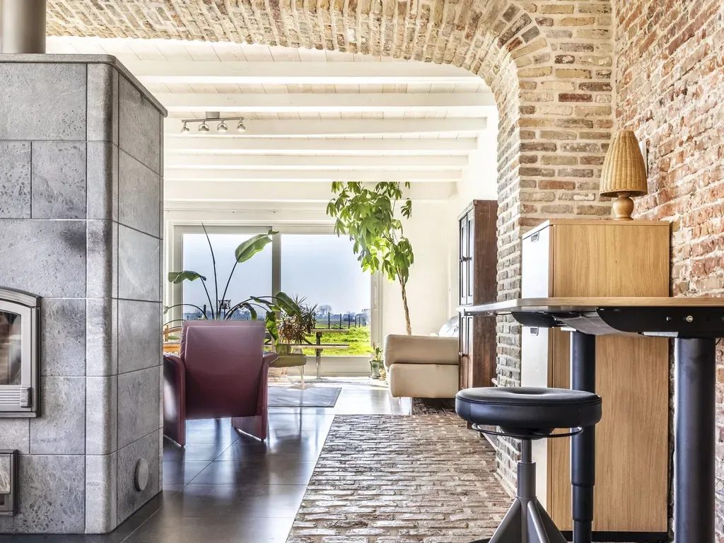 Zowel de woon- als eetkamer geniet gezelligheid doormiddel van de centraal geïnstalleerde speksteenkachel.