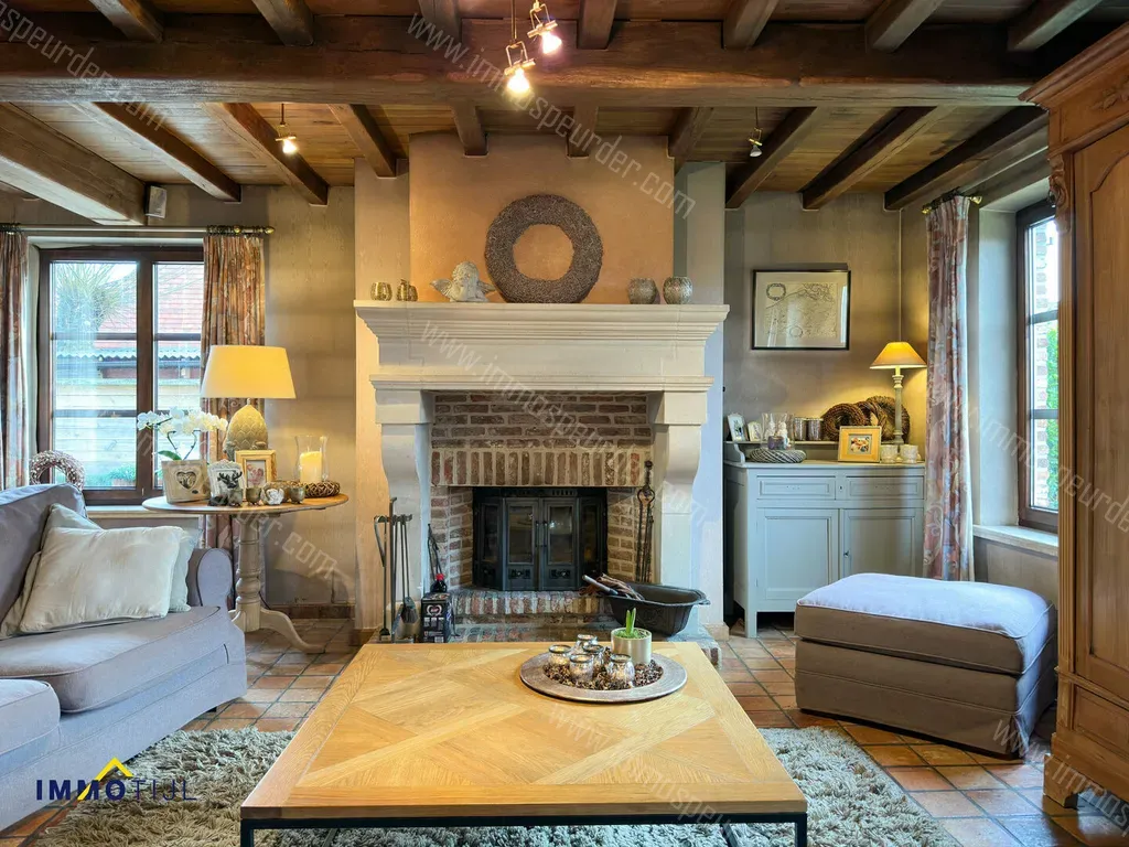 Pareel 2 - 9260 Wichelen - Deze karaktervolle vrijstaande woning beschikt op het gelijkvloers over een inkomhal met een gastentoilet en voldoende ruimte voor een vestiairekast, een ruime, charmante woonkamer (voorzien van een gezellige houthaard) met eetplaats, ingerichte keuken met rustieke elementen en veel lichtinval en een bureau (heeft ook een aparte deur naar buiten, ideaal voor het creëren van een praktijkruimte, ...). Er is tevens een inpandige garage aanwezig met een berging, douchekamer en een wasruimte (aansluiting wasmachine en droogkast).