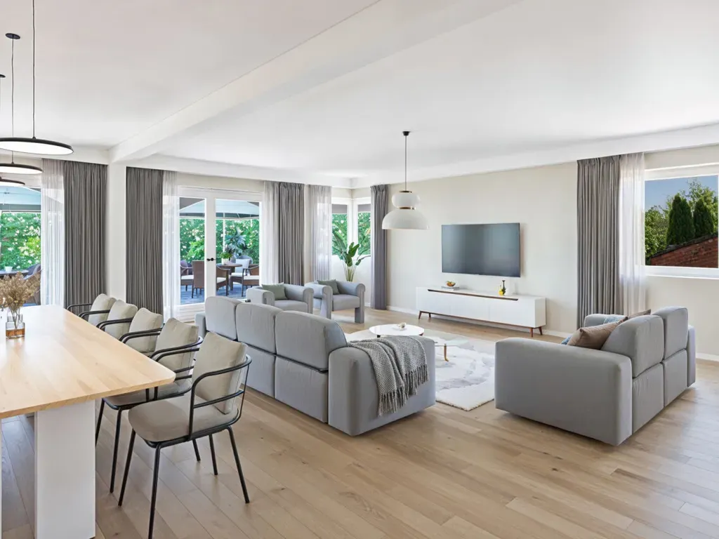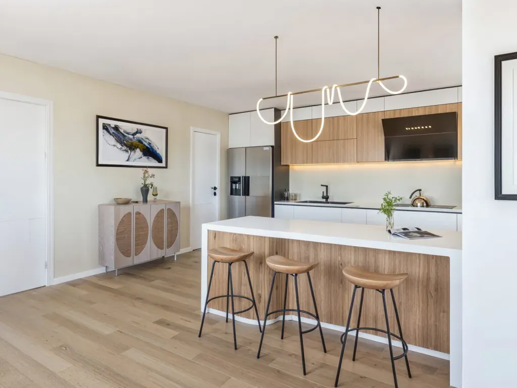 Binnenin geniet je van een ruime, lichtrijke leefruimte met een moderne open keuken (65m2), perfect georiënteerd naar de magnifieke, uitgestrekte tuin (2324 m2), een droom voor gezinnen, tuinliefhebbers of wie houdt van het buitenleven.