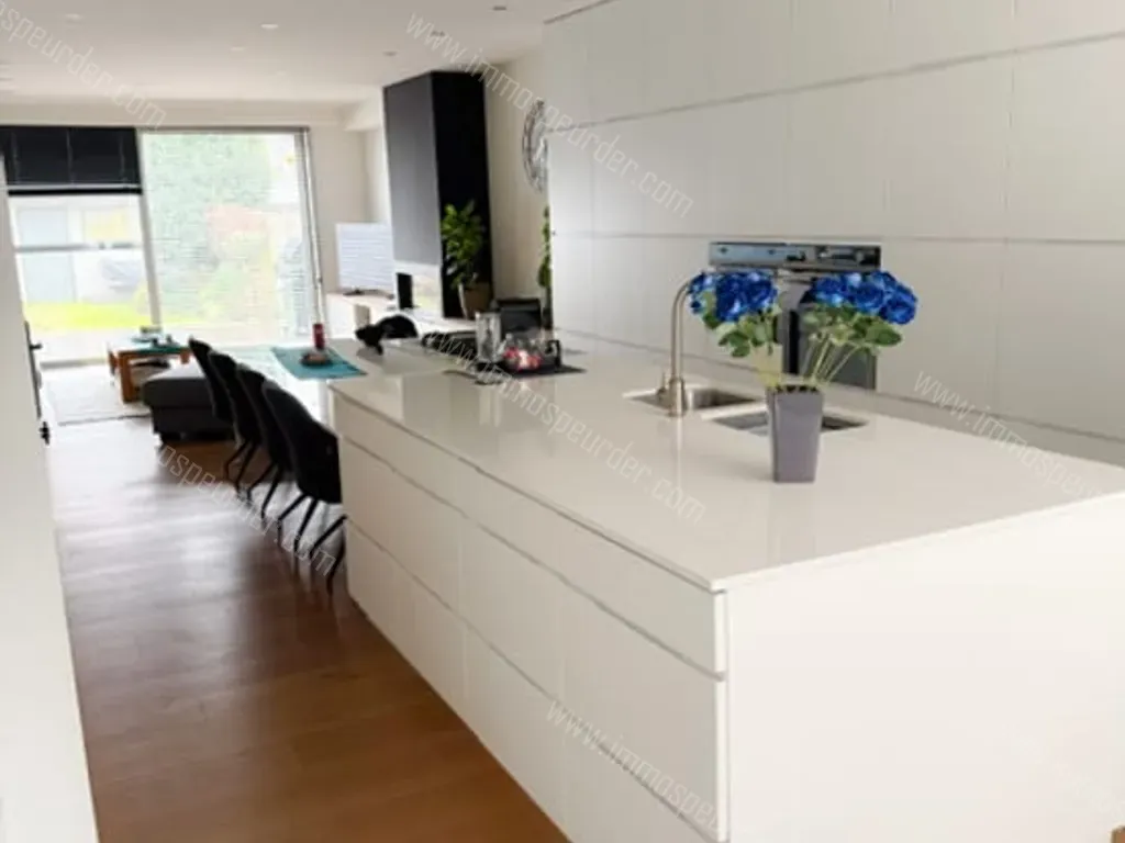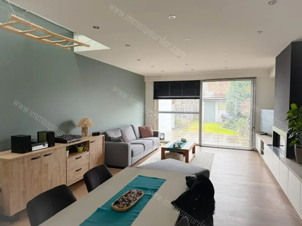 Je komt binnen via de moderne open leefkeuken die volledig is open getrokken naar de woonkamer met gashaard. De achterzijde heeft een schuifraam over de volledige breedte van de woning dewelke zorgt voor een overvloed aan natuurlijk licht in de woning en een ruim zicht op het terras en de tuin.
